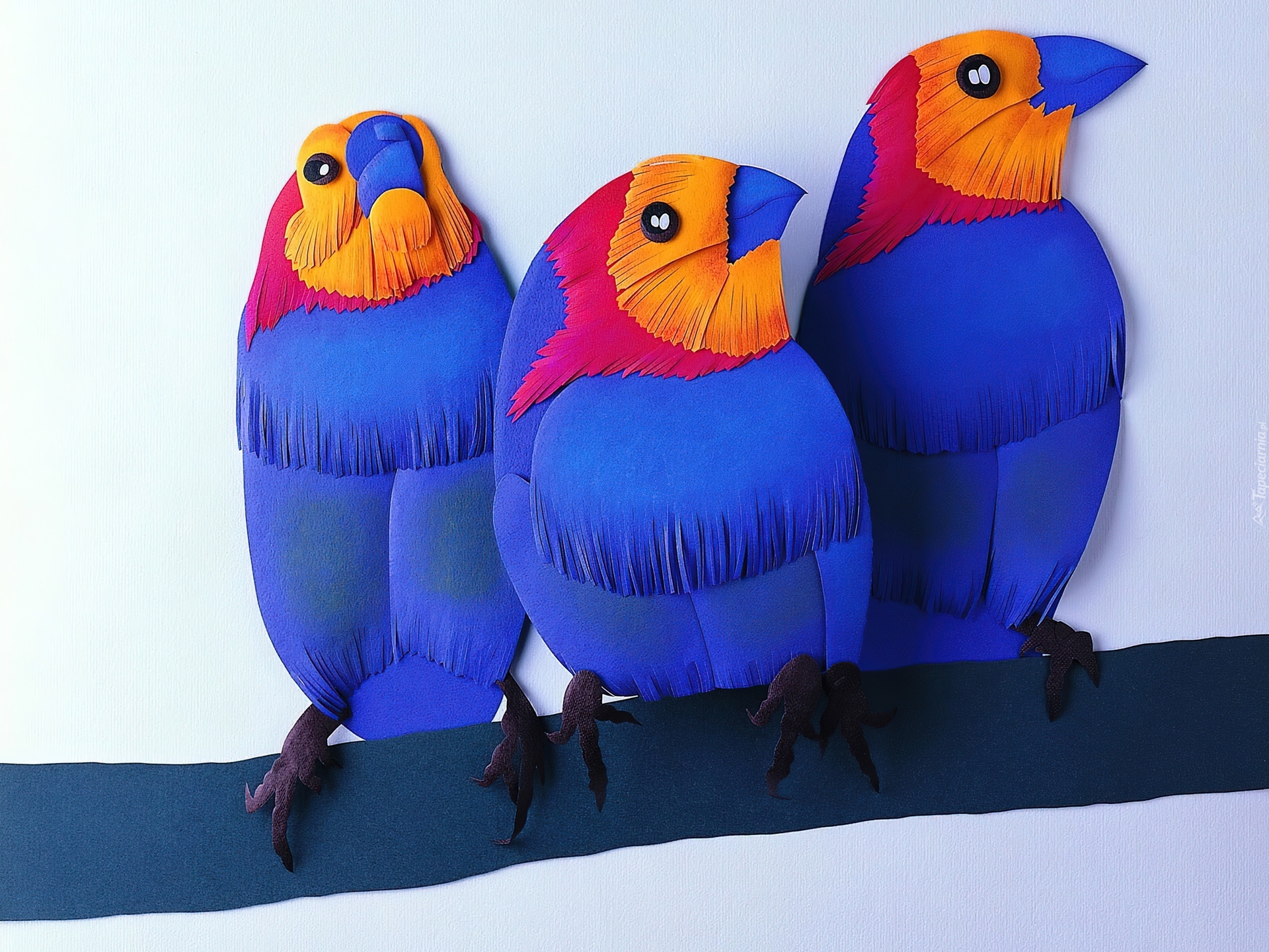 Edytor tapety: Trzy, Papużki, Gałąź