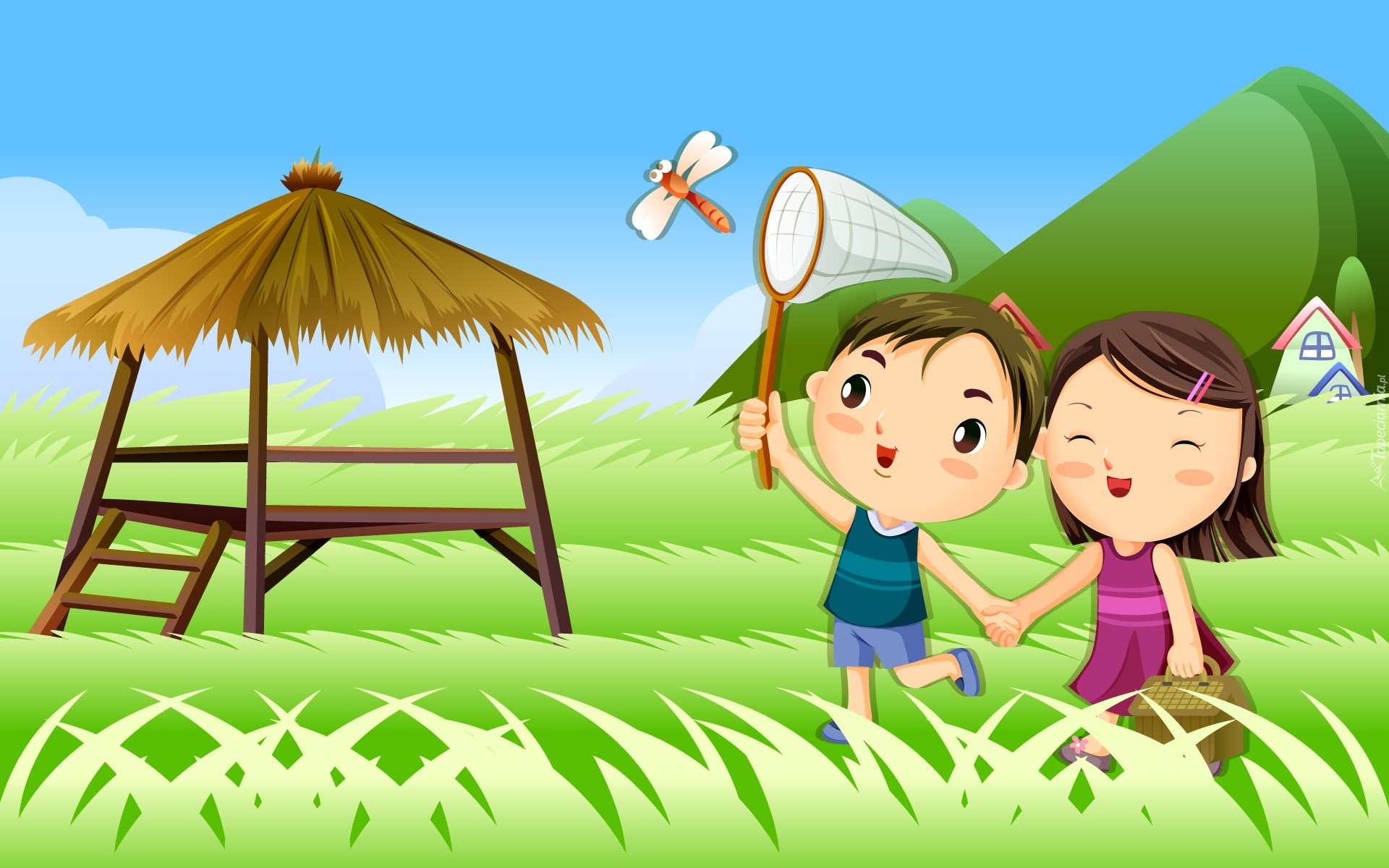 Edytor tapety: Para, Zakochanych, Spacer, Łąka