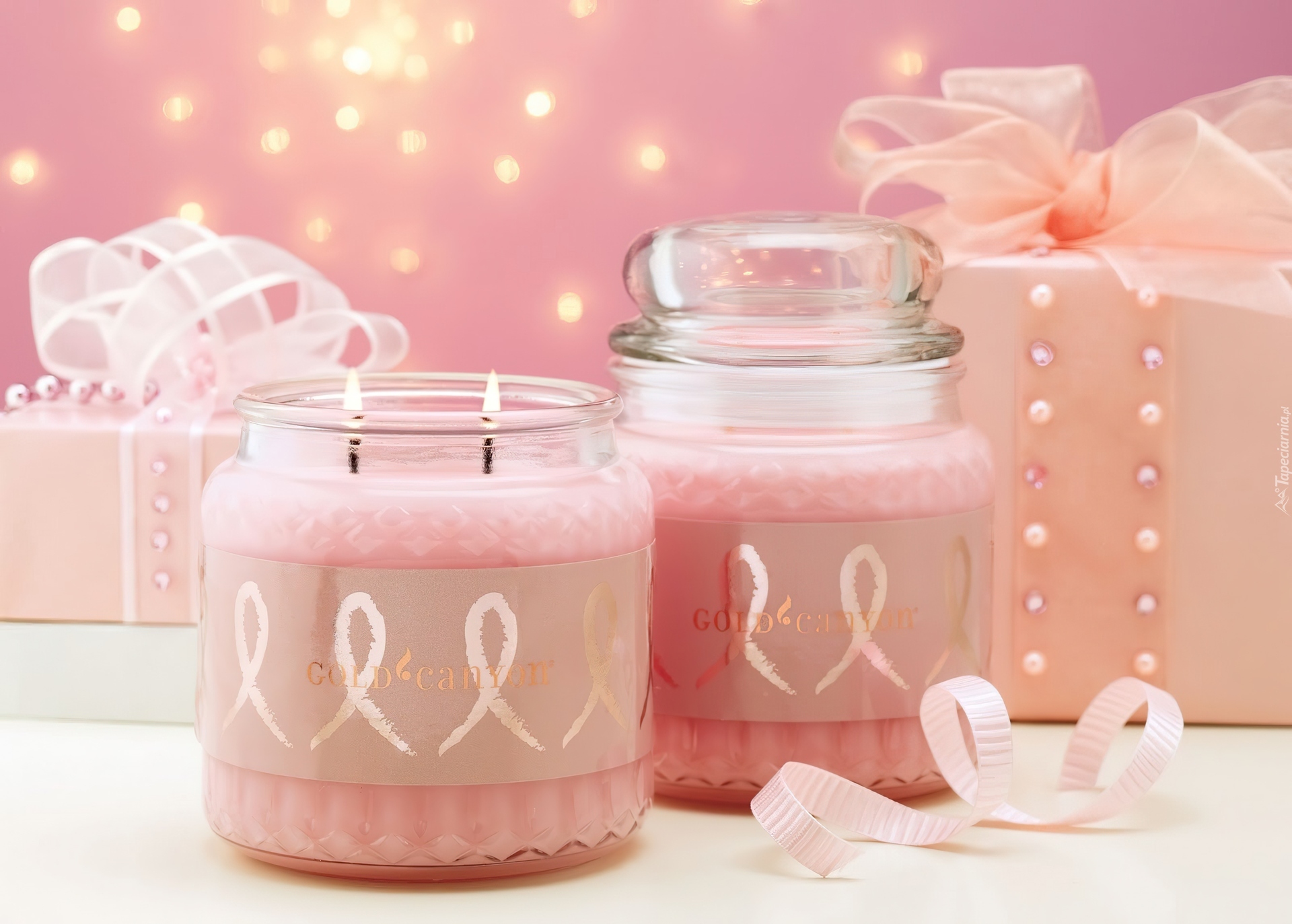 Edytor tapety: Różowe, Świeczki, Prezenty