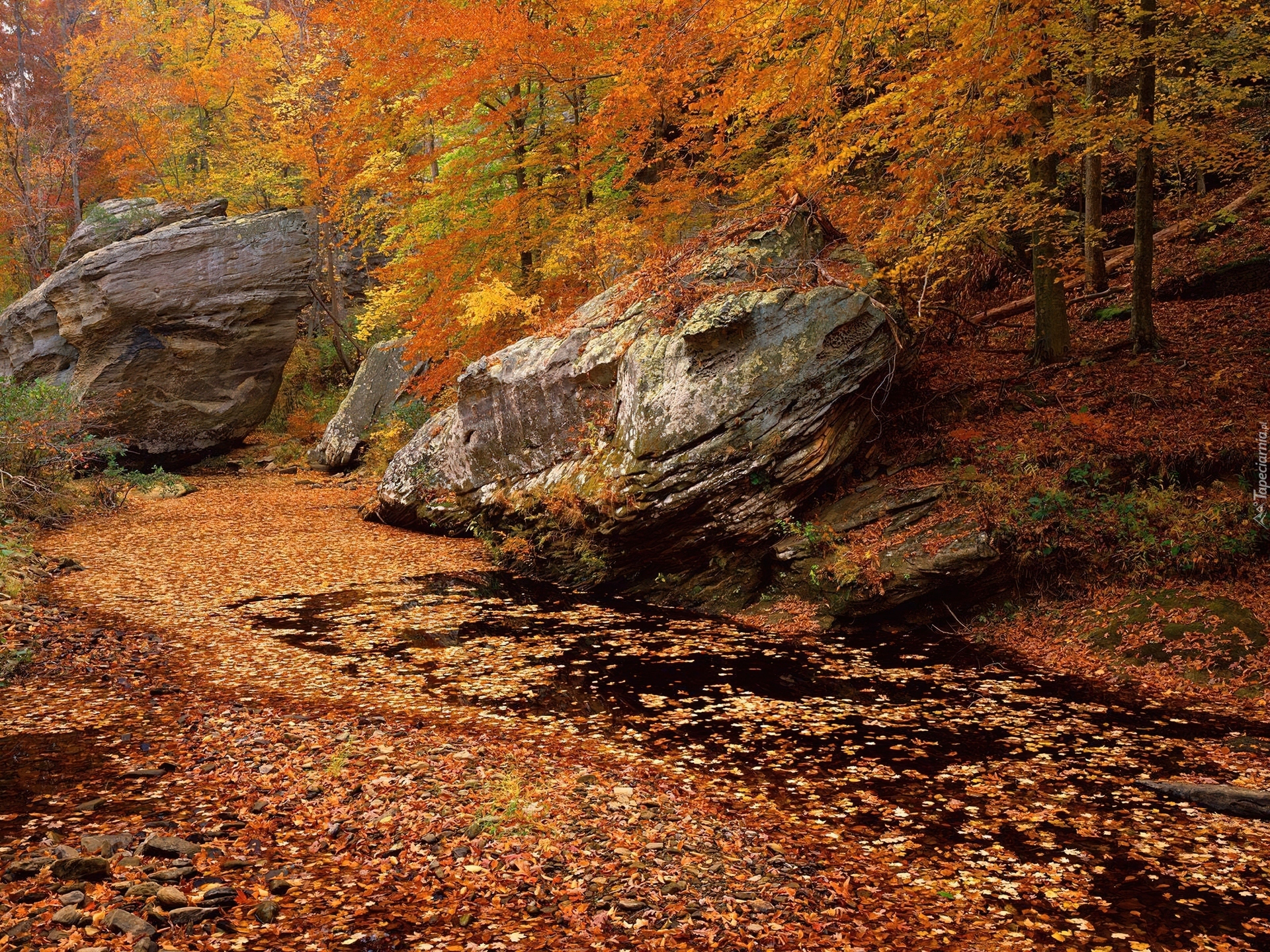 Edytor tapety: Las, Drzewa, Strumyk, Kolory, Jesieni