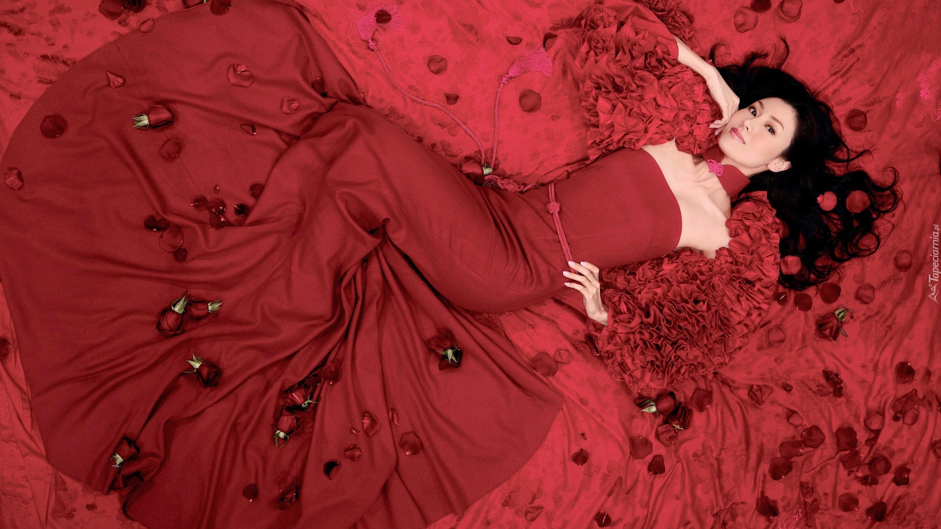 Edytor tapety: Dziewczyna, W, Czerwieni, Róże