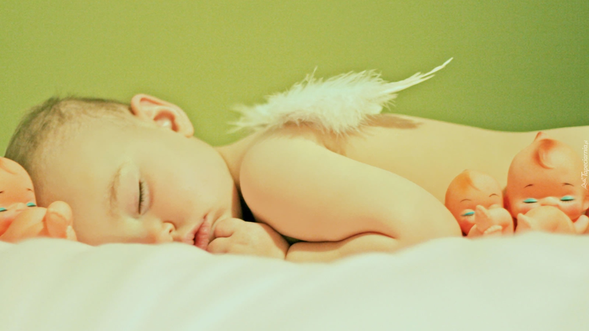 Edytor tapety: Śpiące, Dziecko, Zabawki, Piórko