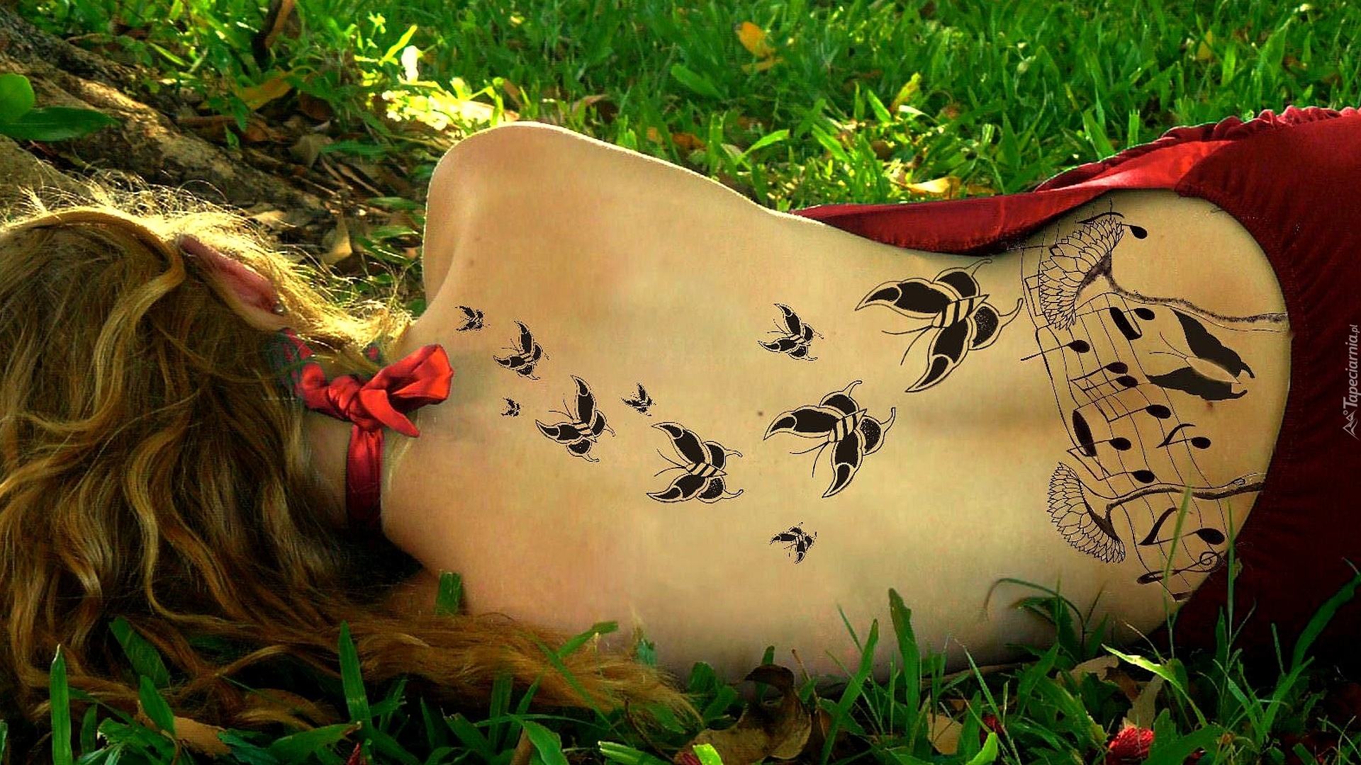 Edytor tapety: Kobieta, Tatuaż, Muzyczny, Trawa