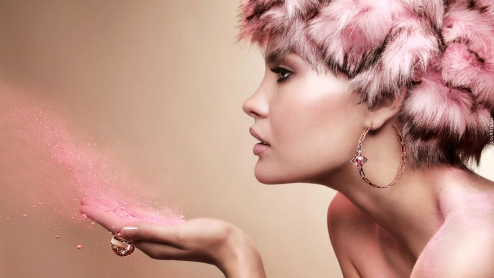 Edytor tapety: Kobieta, Makijaż, Kolczyk, Róż