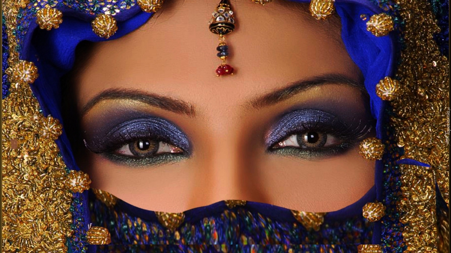 Edytor tapety: Kobieta, Makijaż, Niebieska, Chusta