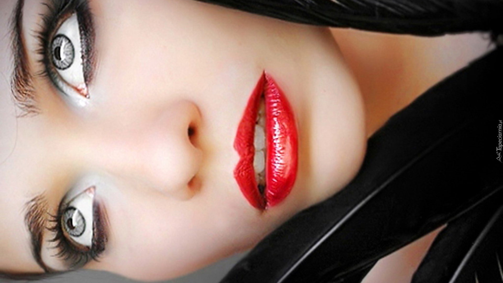 Edytor tapety: Kobieta, Makijaż, Pióra