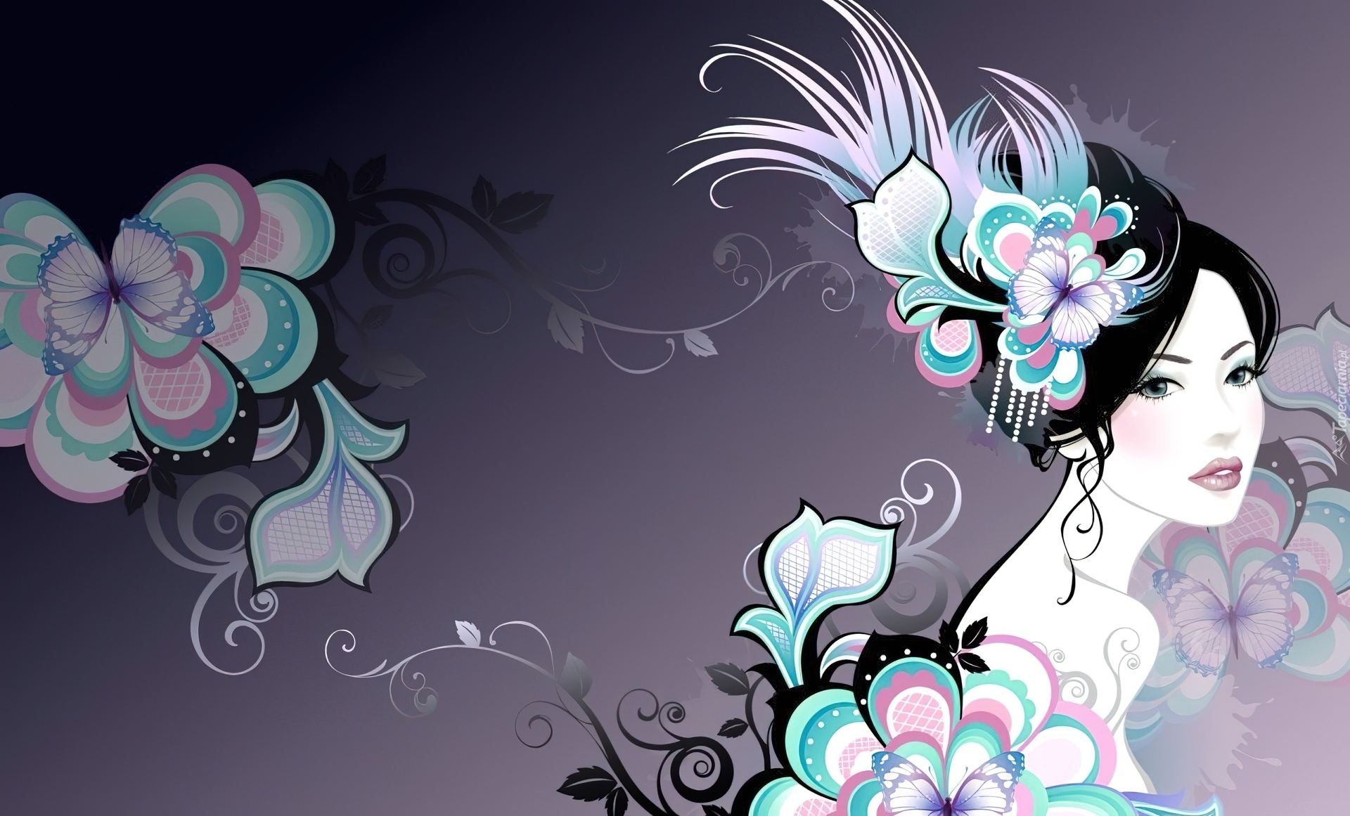 Edytor tapety: Kobieta, Fryzura, Kwiaty
