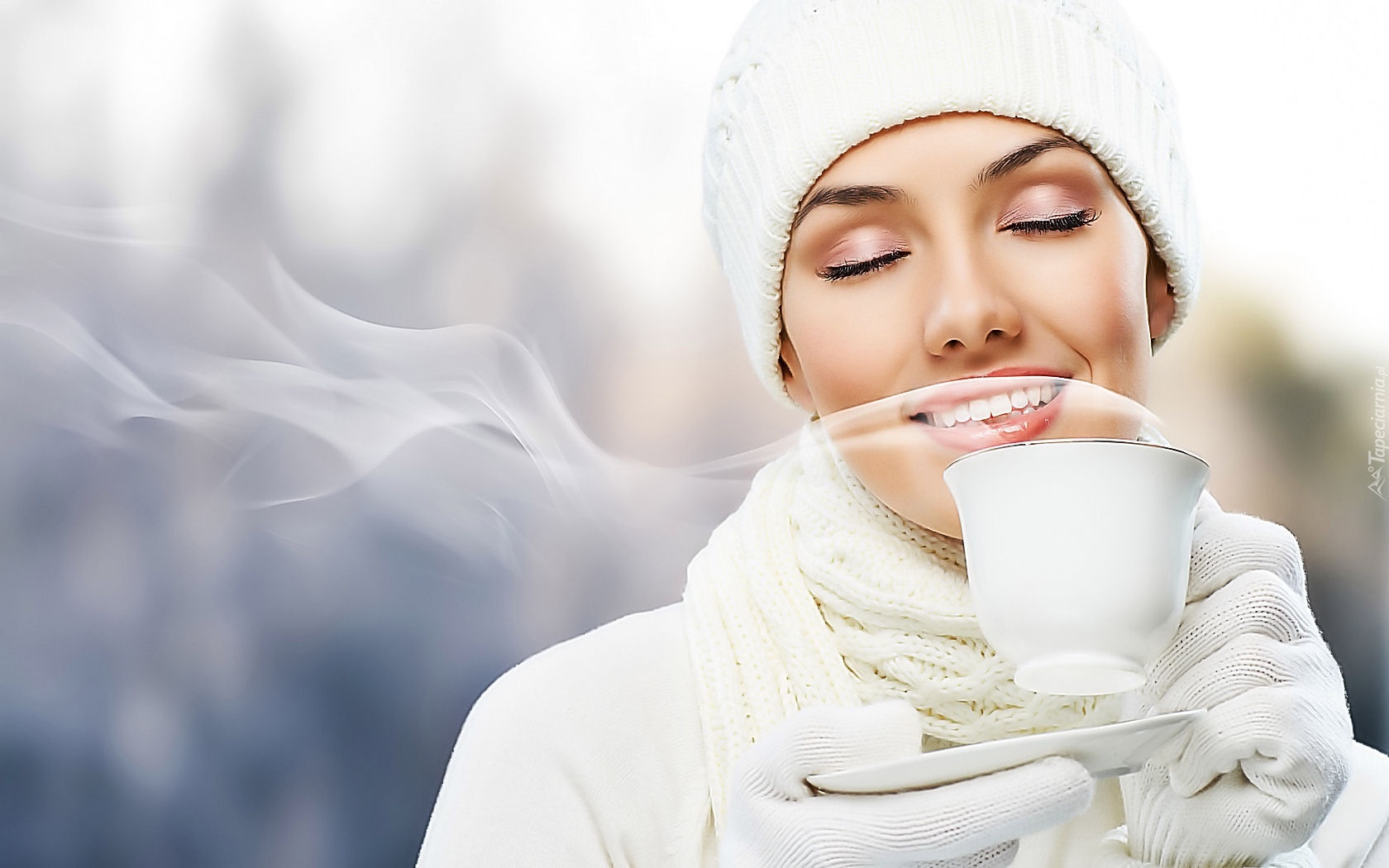 Edytor tapety: Kobieta, Zima, Filiżanka