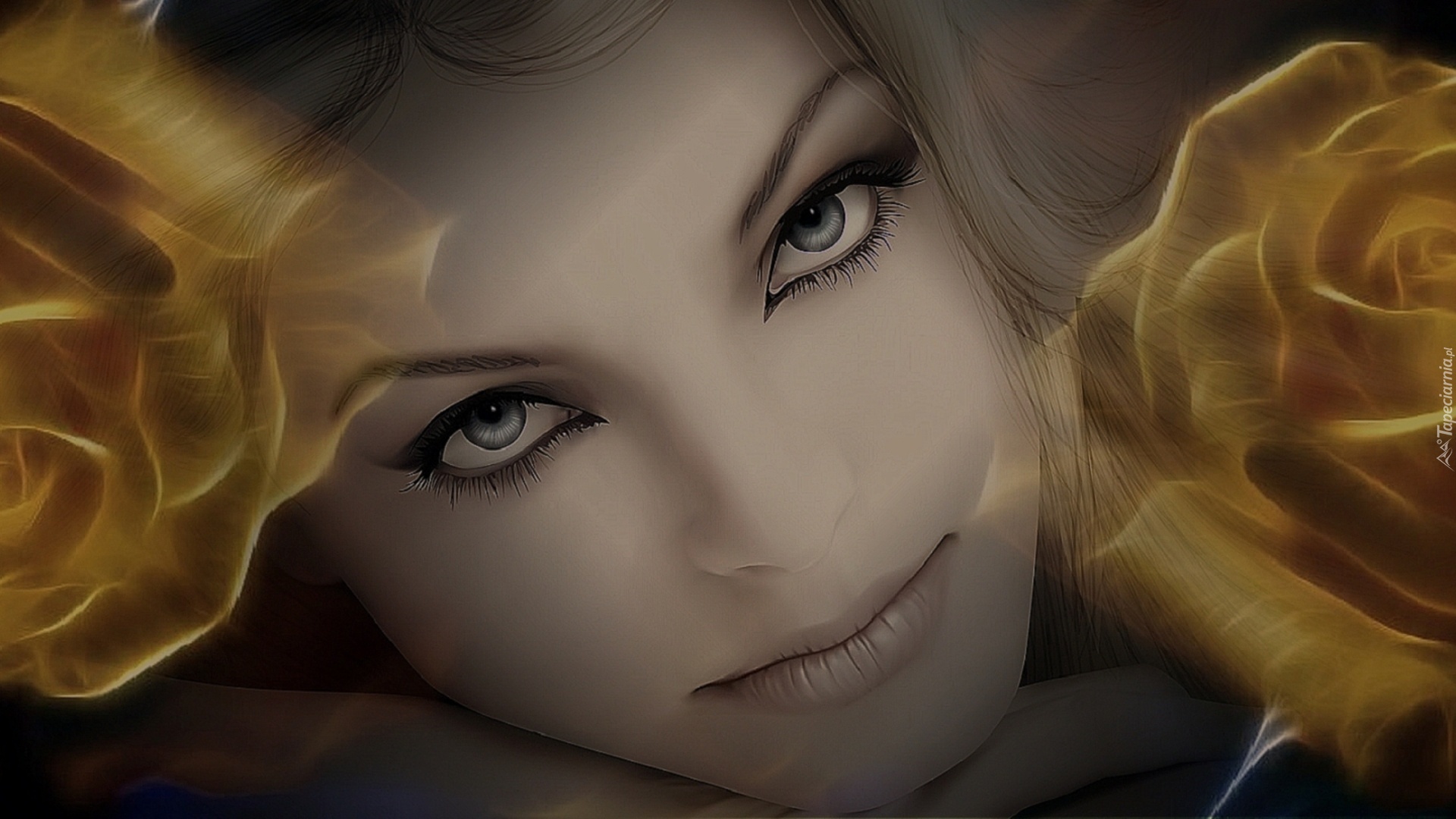 Edytor tapety: Piosenkarka, Yvonne Catterfeld, Róże, Grafika