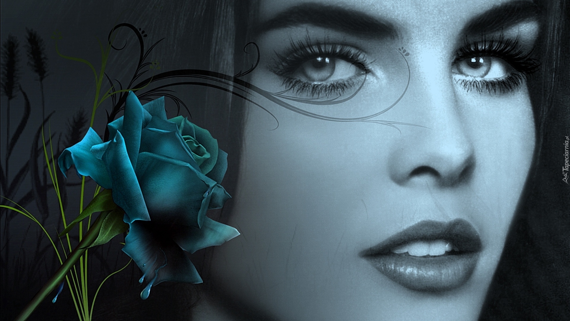 Edytor tapety: Kobieta, Niebieska, Róża, Grafika