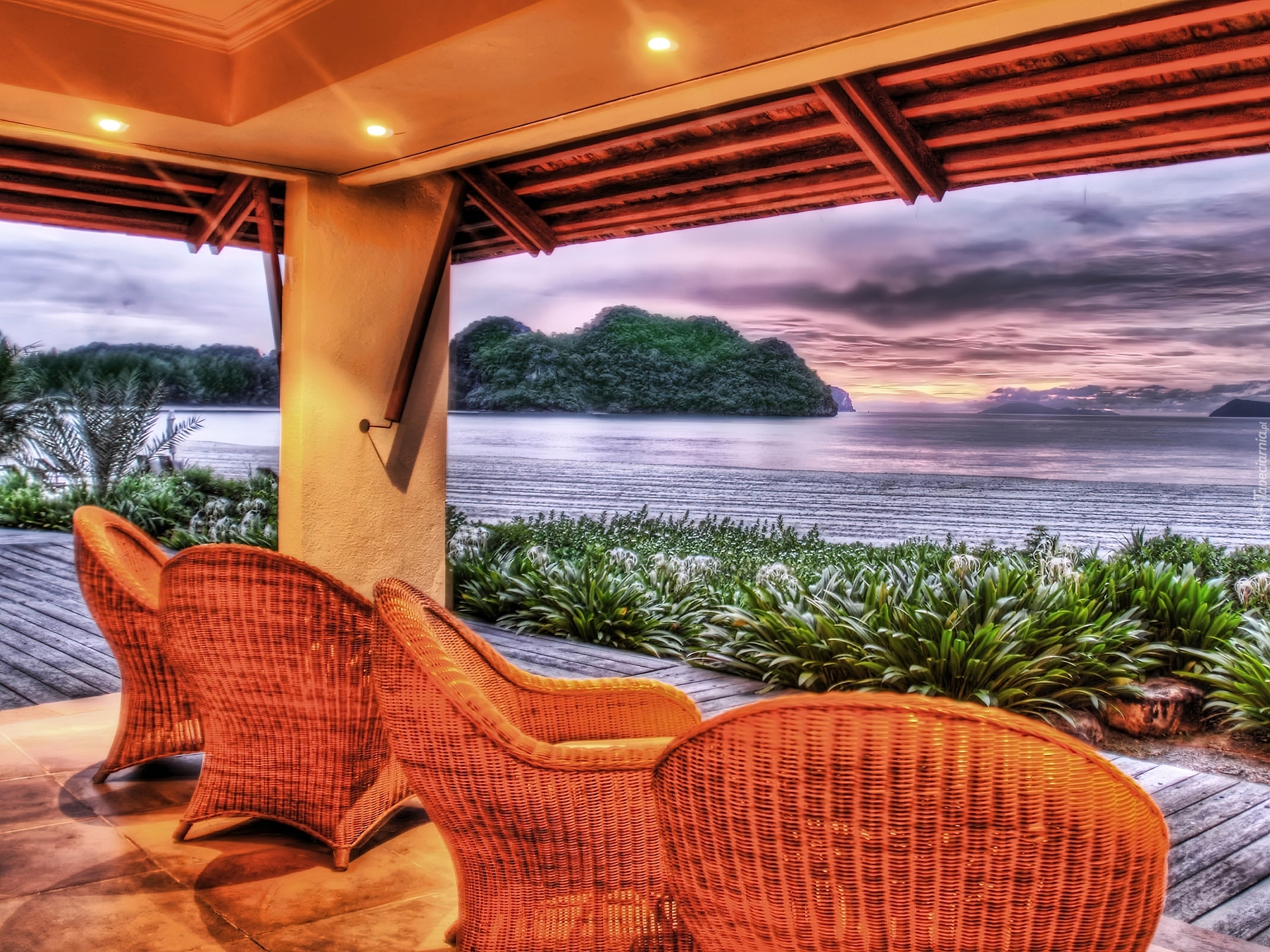 Edytor tapety: Zachód, Słońca, Taras, Fotele