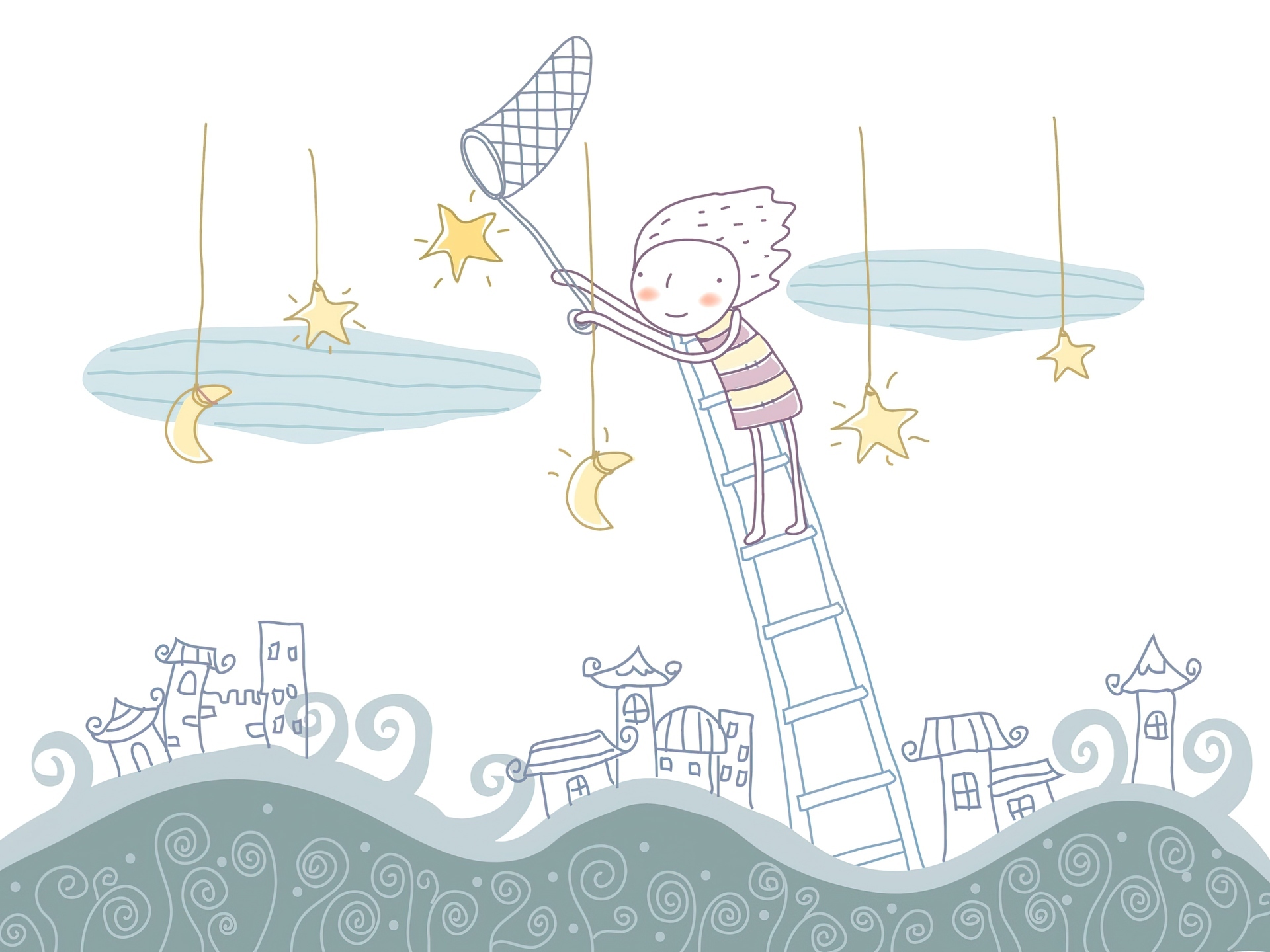 Edytor tapety: Fantasy, Dziewczynka, Drabina, Gwiazdy