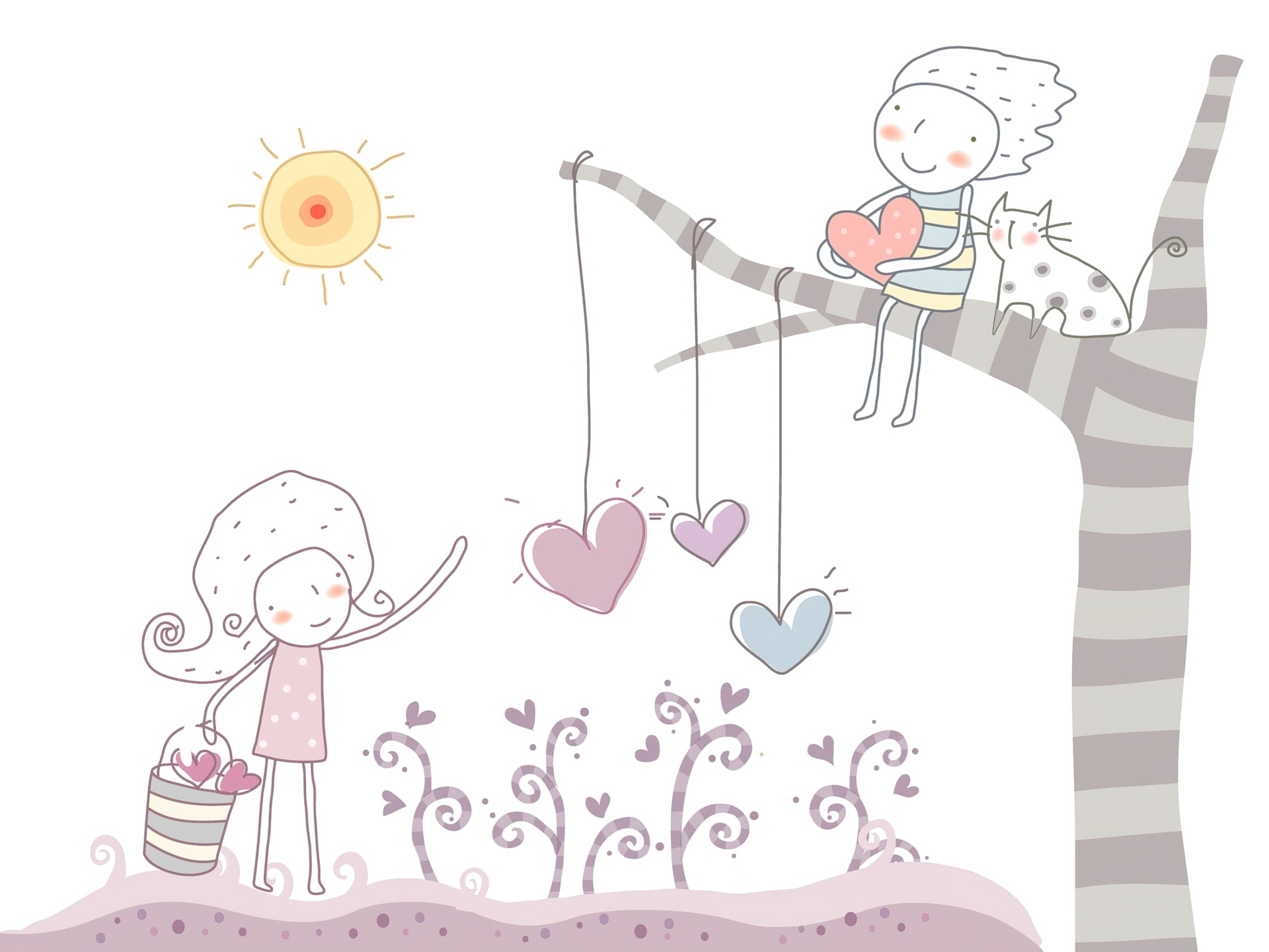 Edytor tapety: Fantasy, Dwie, Dziewczynki, Drzewo, Serduszka