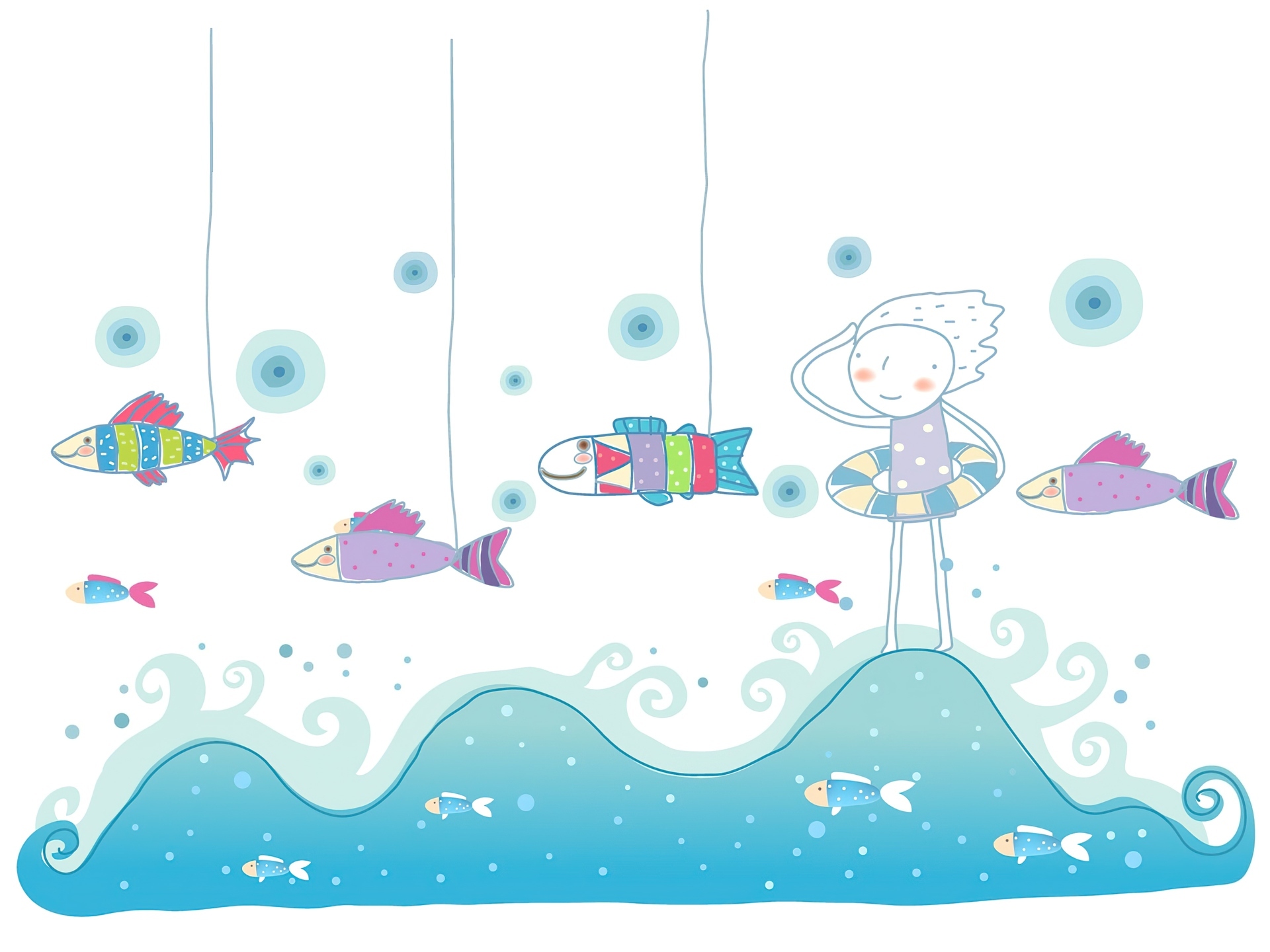 Edytor tapety: Dziewczynka, Morze, Ryby