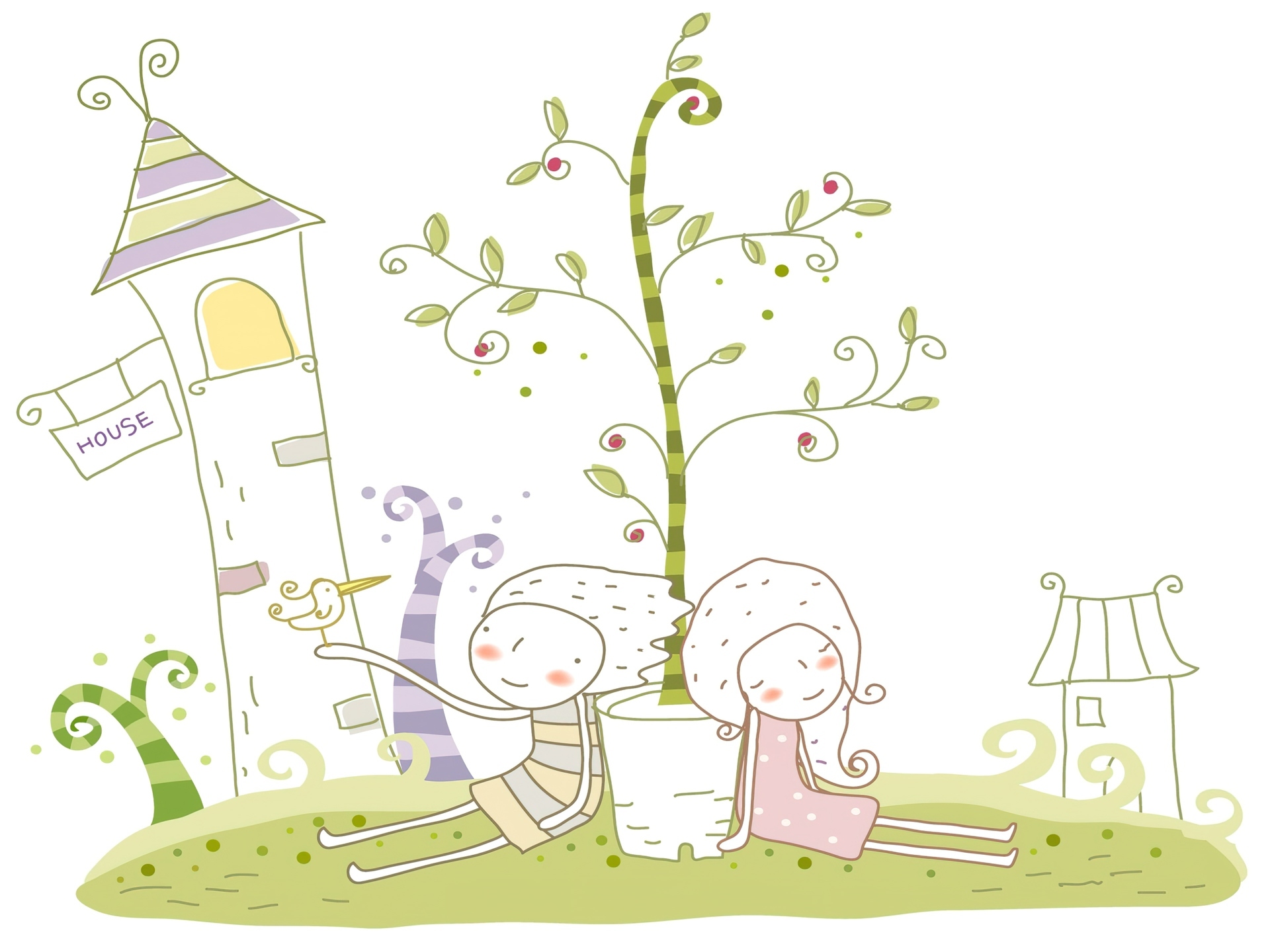 Edytor tapety: Fantasy, Dzieci, Roślinka, Domki, Grafika