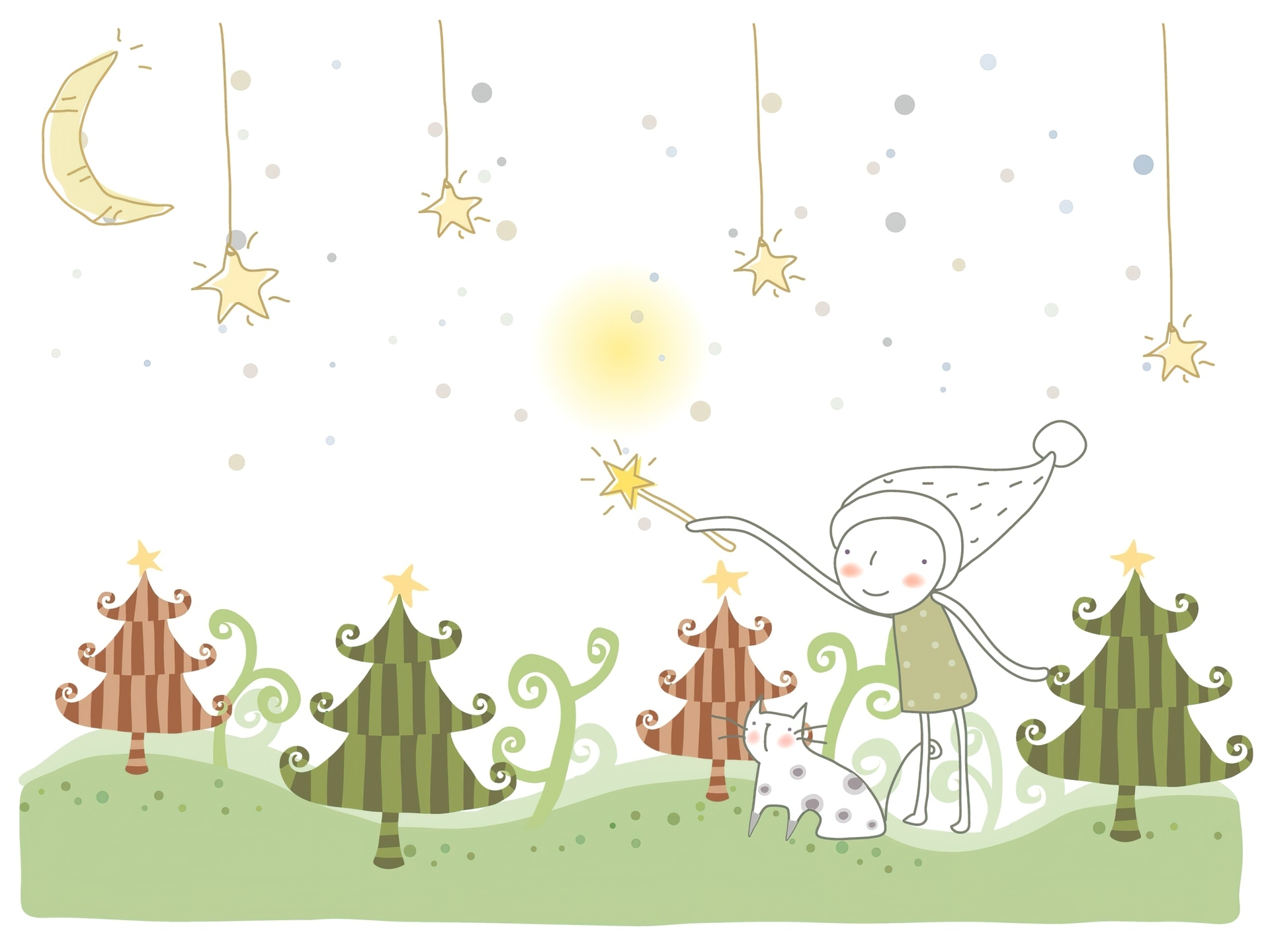 Edytor tapety: Dziecko, Las, Kotek, Gwiazdki, Grafika