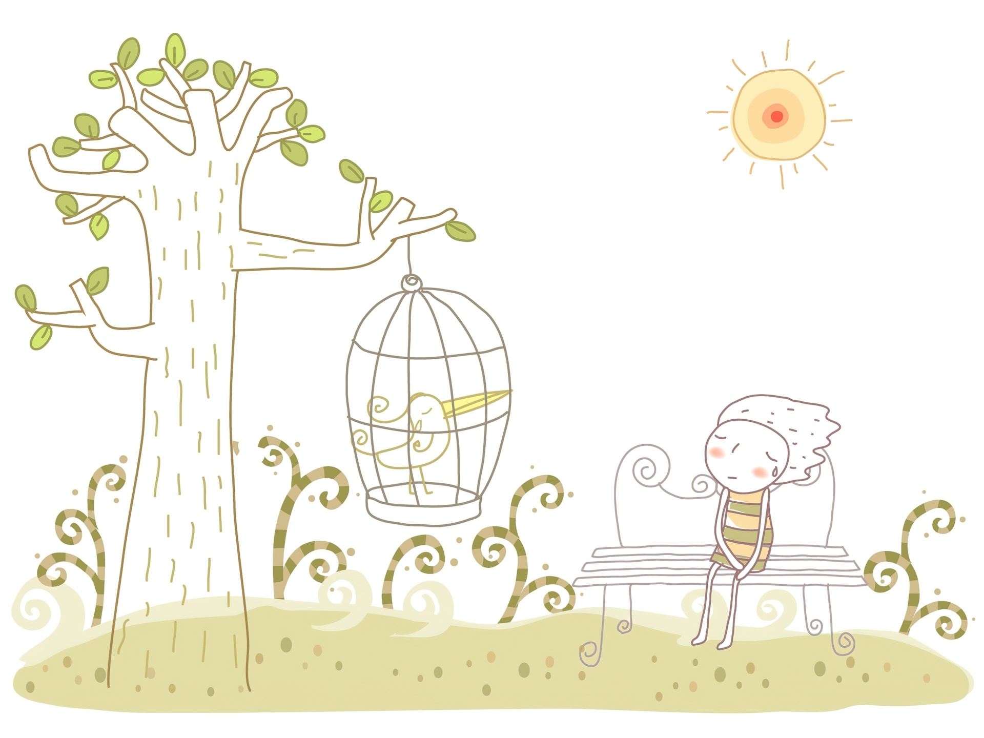 Edytor tapety: Dziecko, Ławeczka, Parka, Ptaszek, Klatka