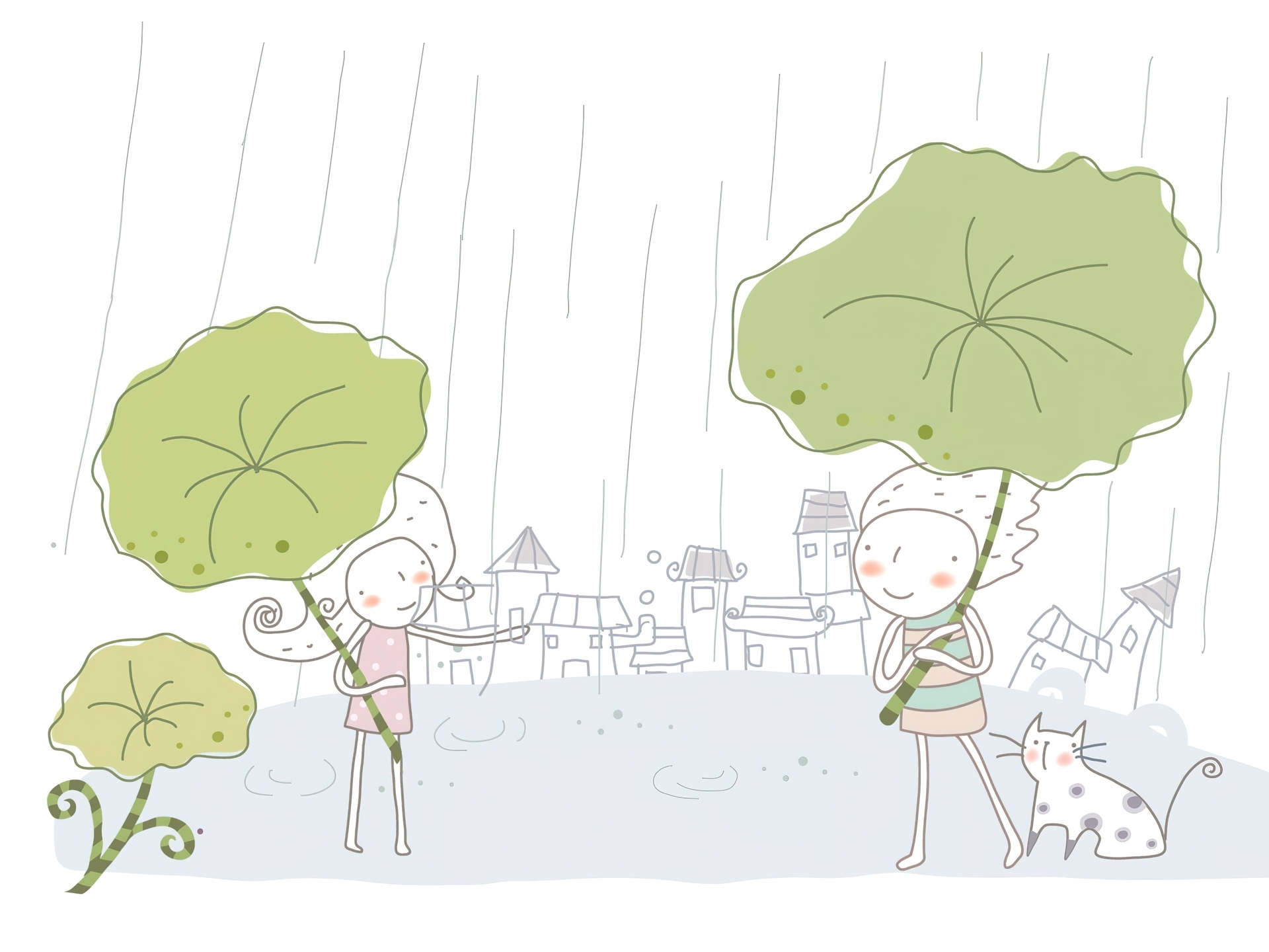 Edytor tapety: Dzieci, Deszcz, Liście, Kotek
