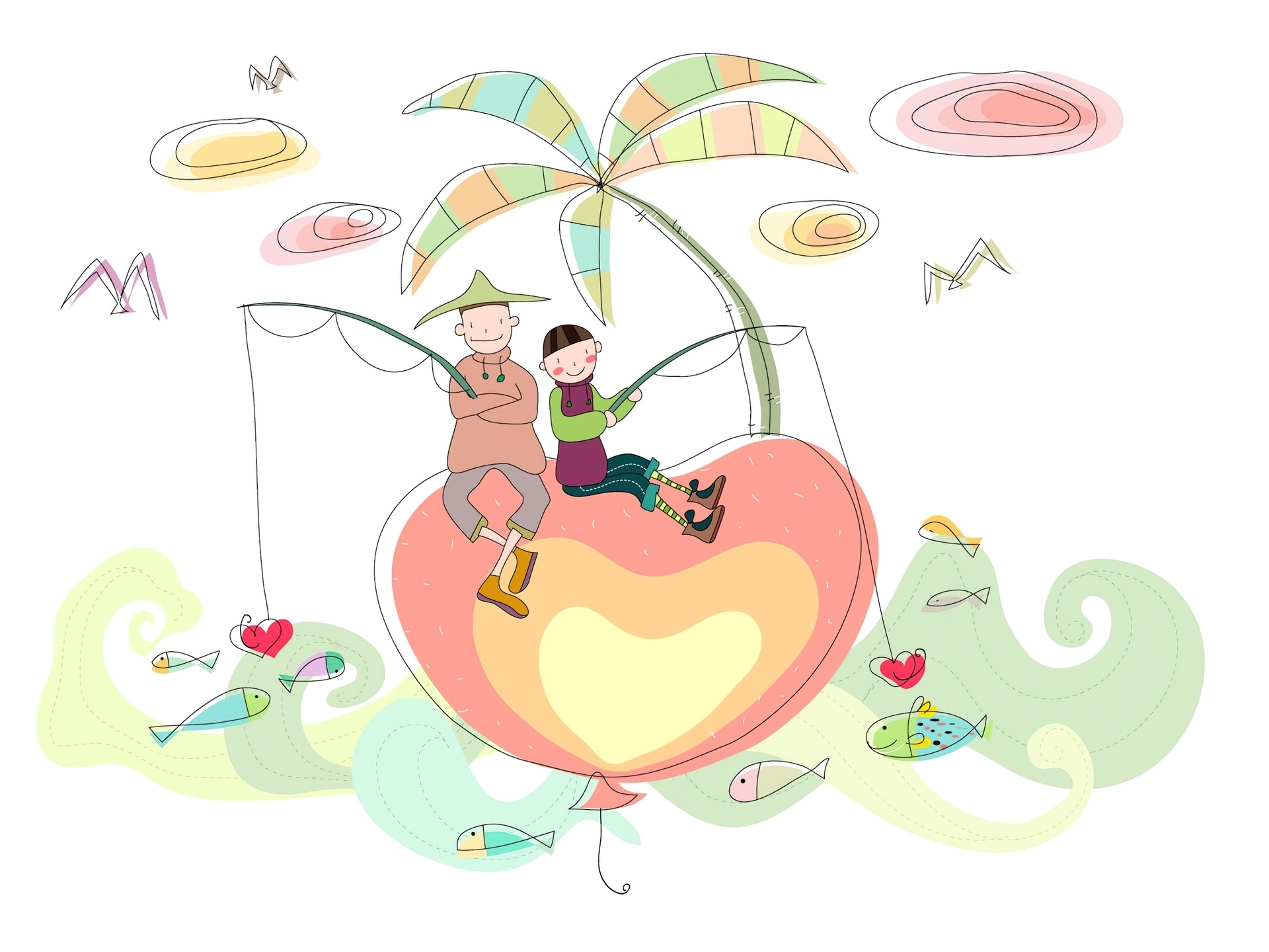 Edytor tapety: Szczęśliwa, Rodzinka, Ojciec, Syn, Ryby