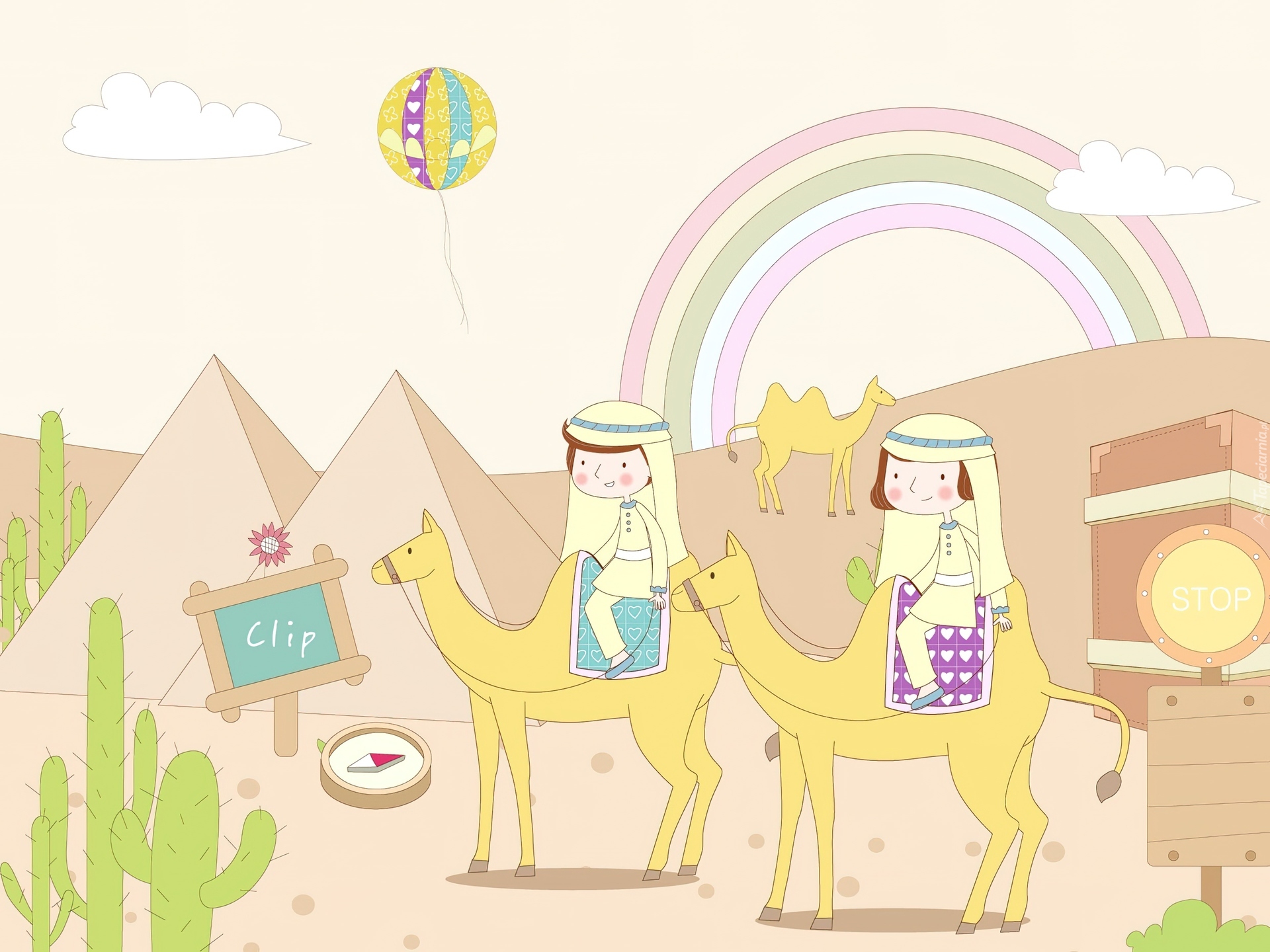 Edytor tapety: Wielbłądy, Pustynia, Grafika