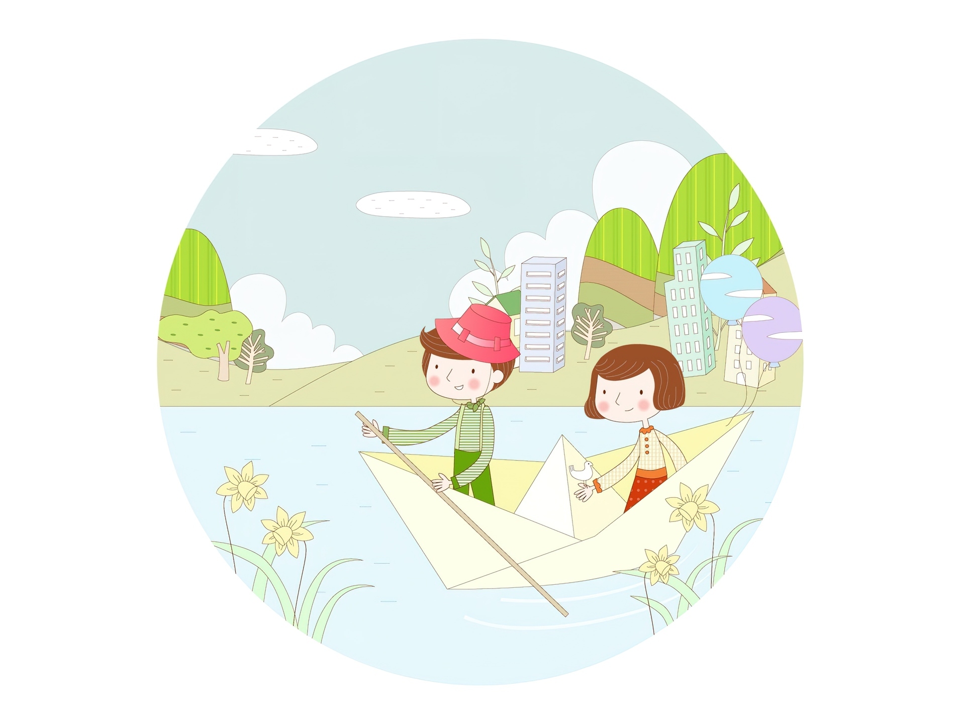 Edytor tapety: Para, Łódeczka, Jezioro, Grafika