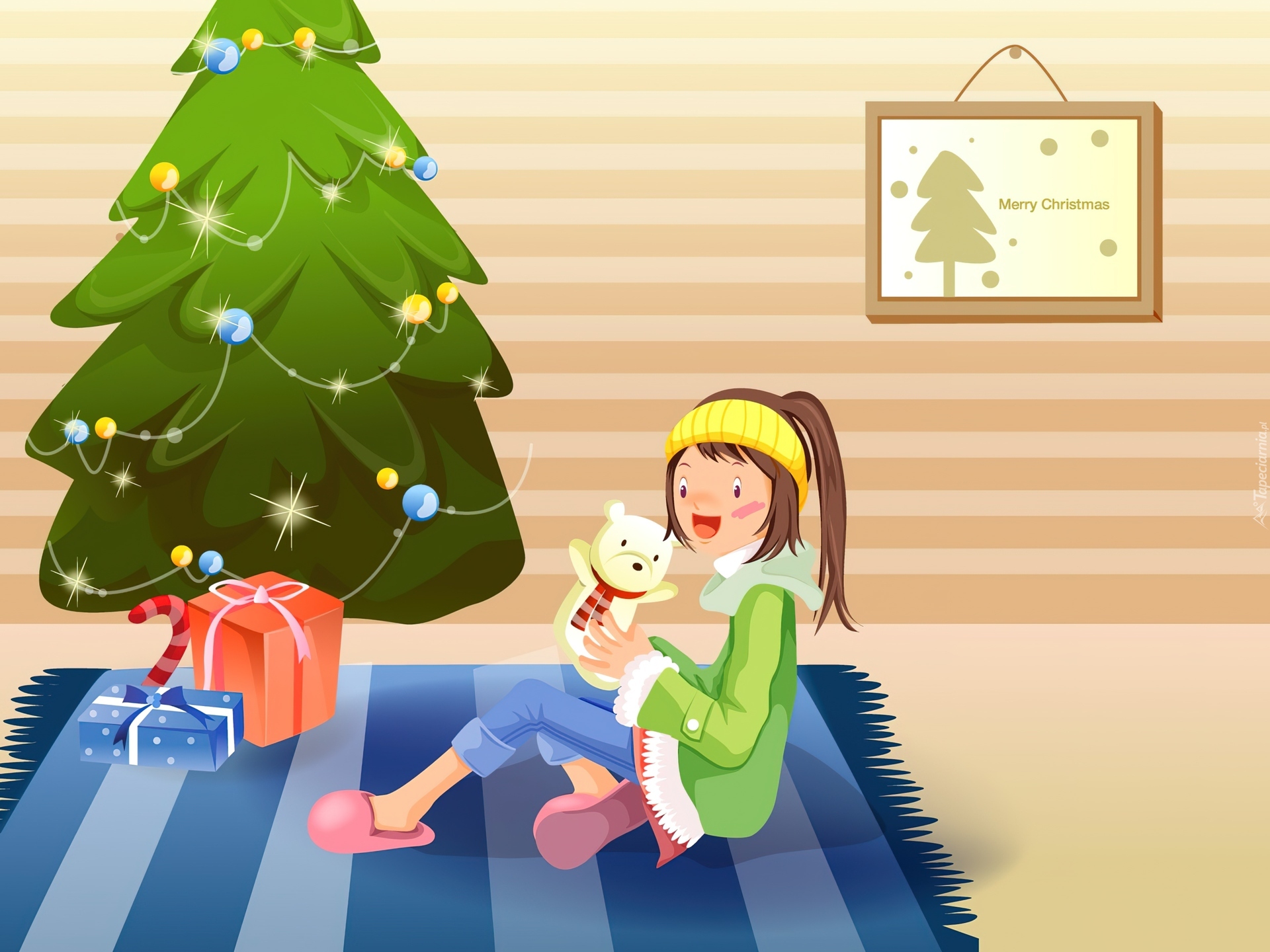 Edytor tapety: Dziewczynka, Choinka, Prezenty