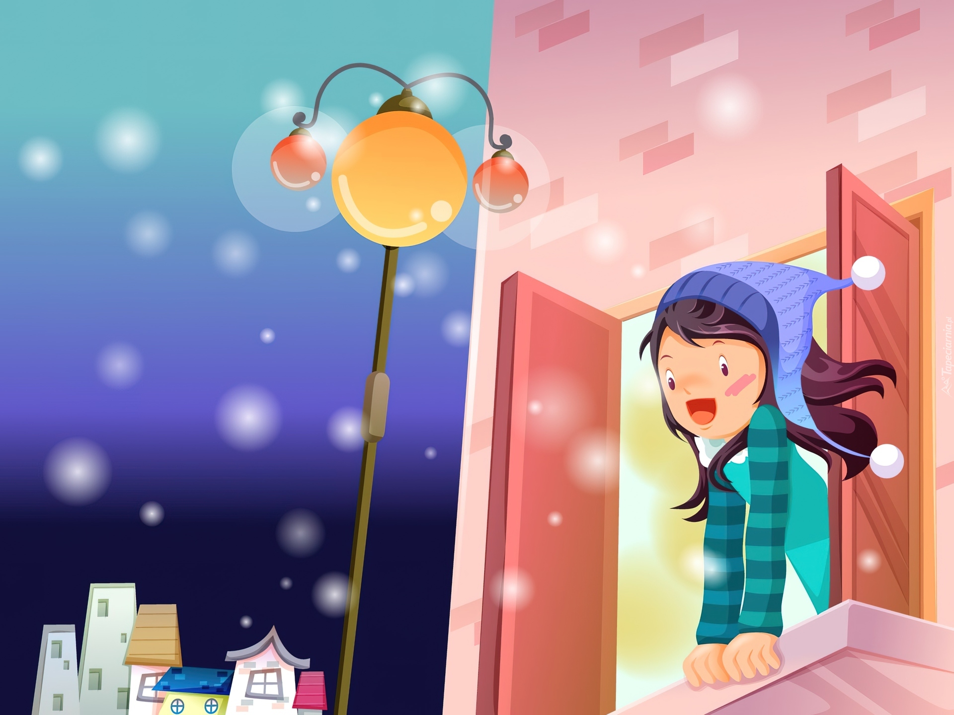 Edytor tapety: Dziewczynka, Zima, Okno