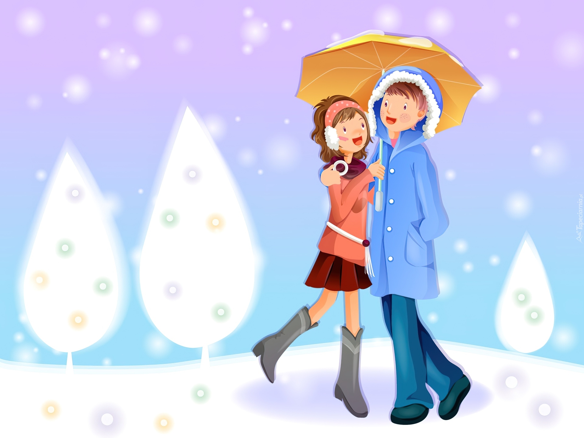 Edytor tapety: Zakochana, Para, Zima, Śnieg, Grafika