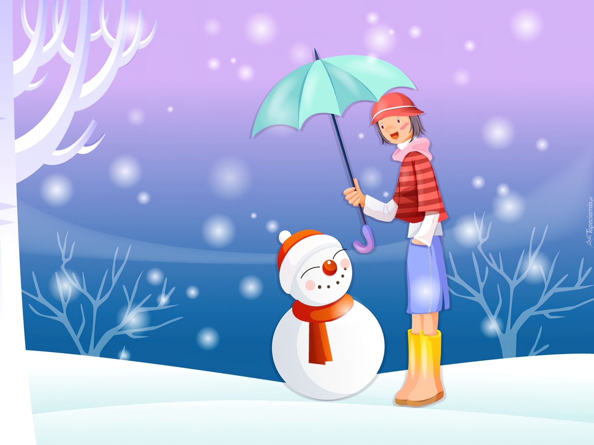 Edytor tapety: Zima, Śnieg, Bałwan, Dziewczyna