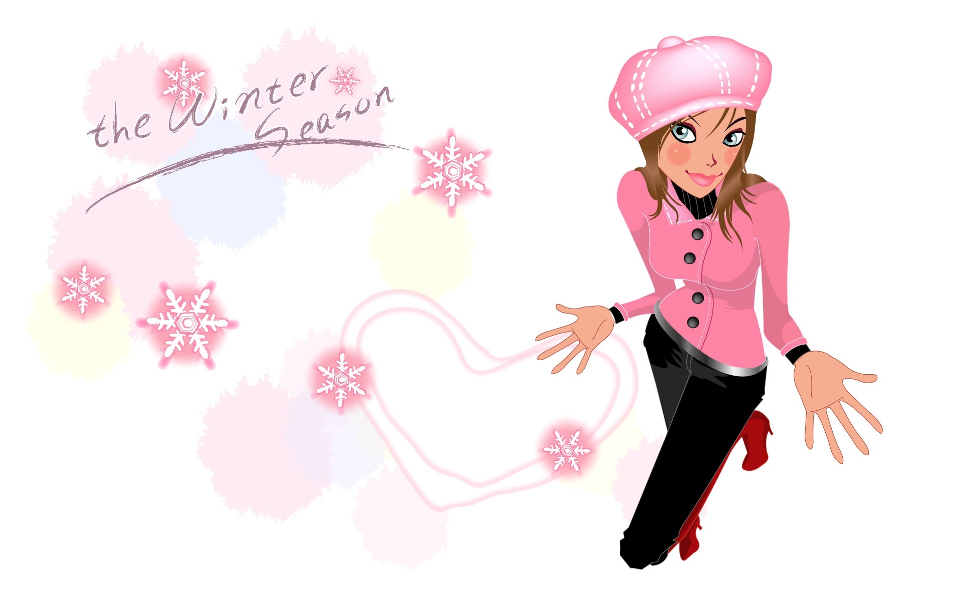 Edytor tapety: Kobieta, Serce, Płatki, Śniegu