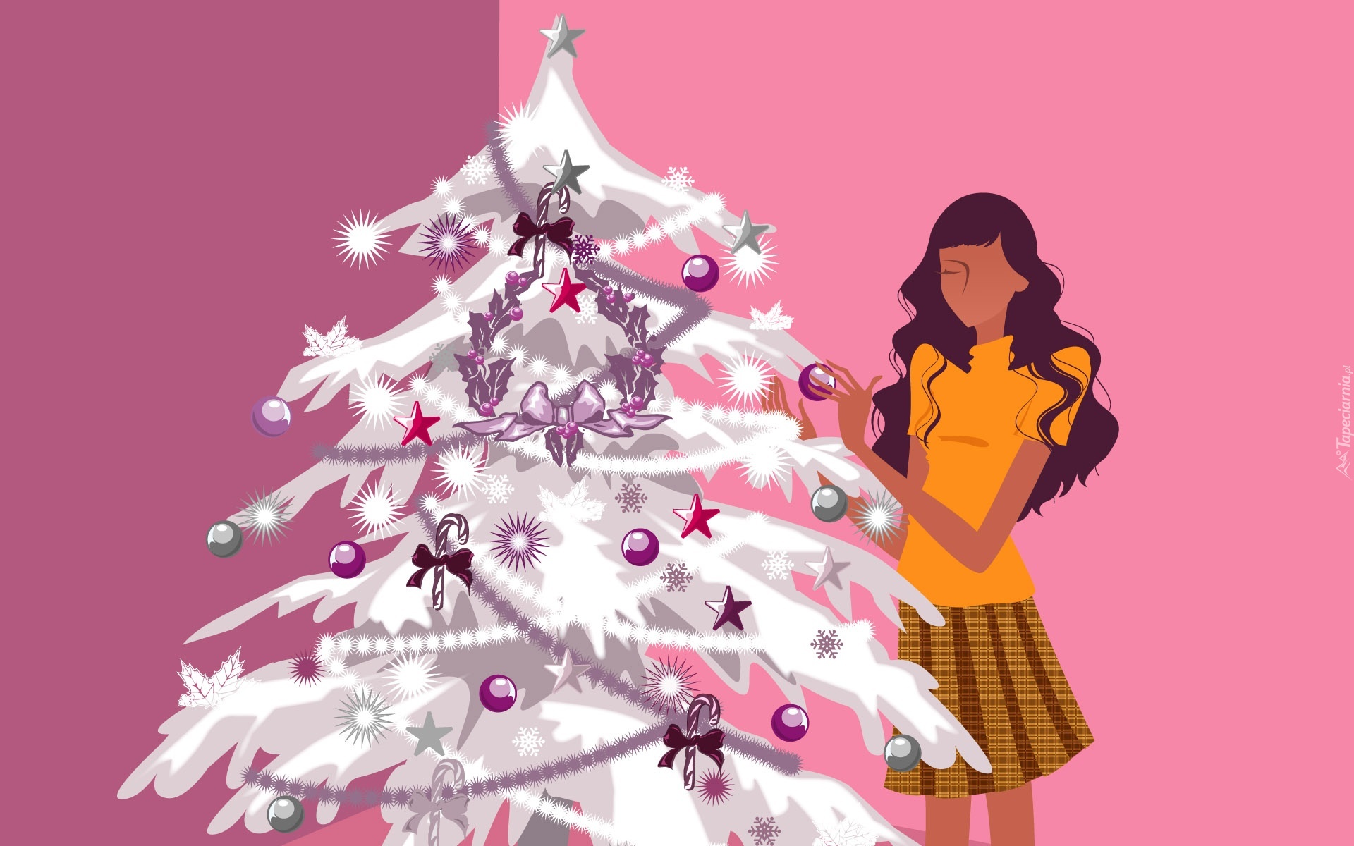 Edytor tapety: Dziewczyna, Choinka, Święta, Grafika
