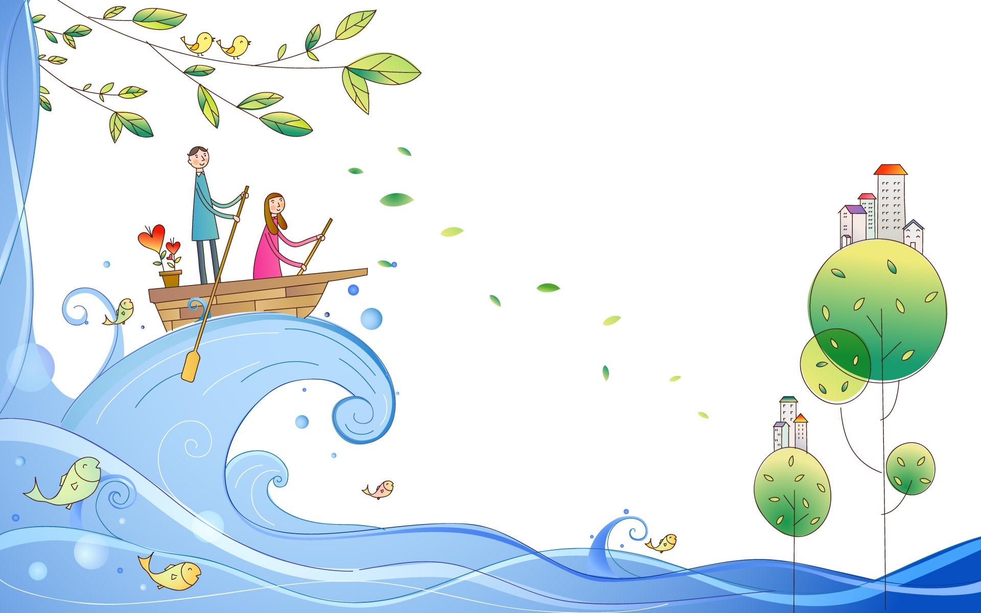 Edytor tapety: Para, Łódka, Fala, Rysunek