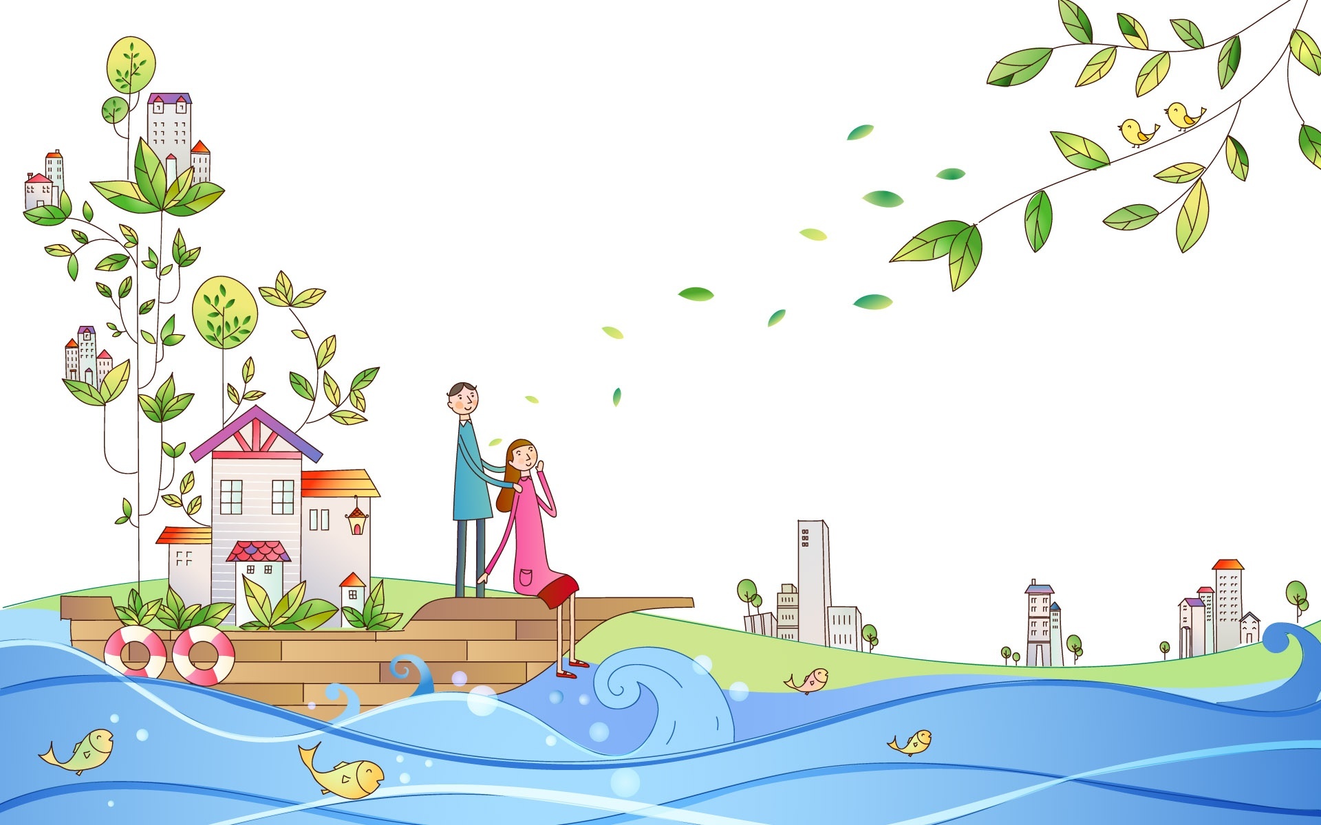 Edytor tapety: Para, Zakochanych, Statek, Podróż, Rysunek