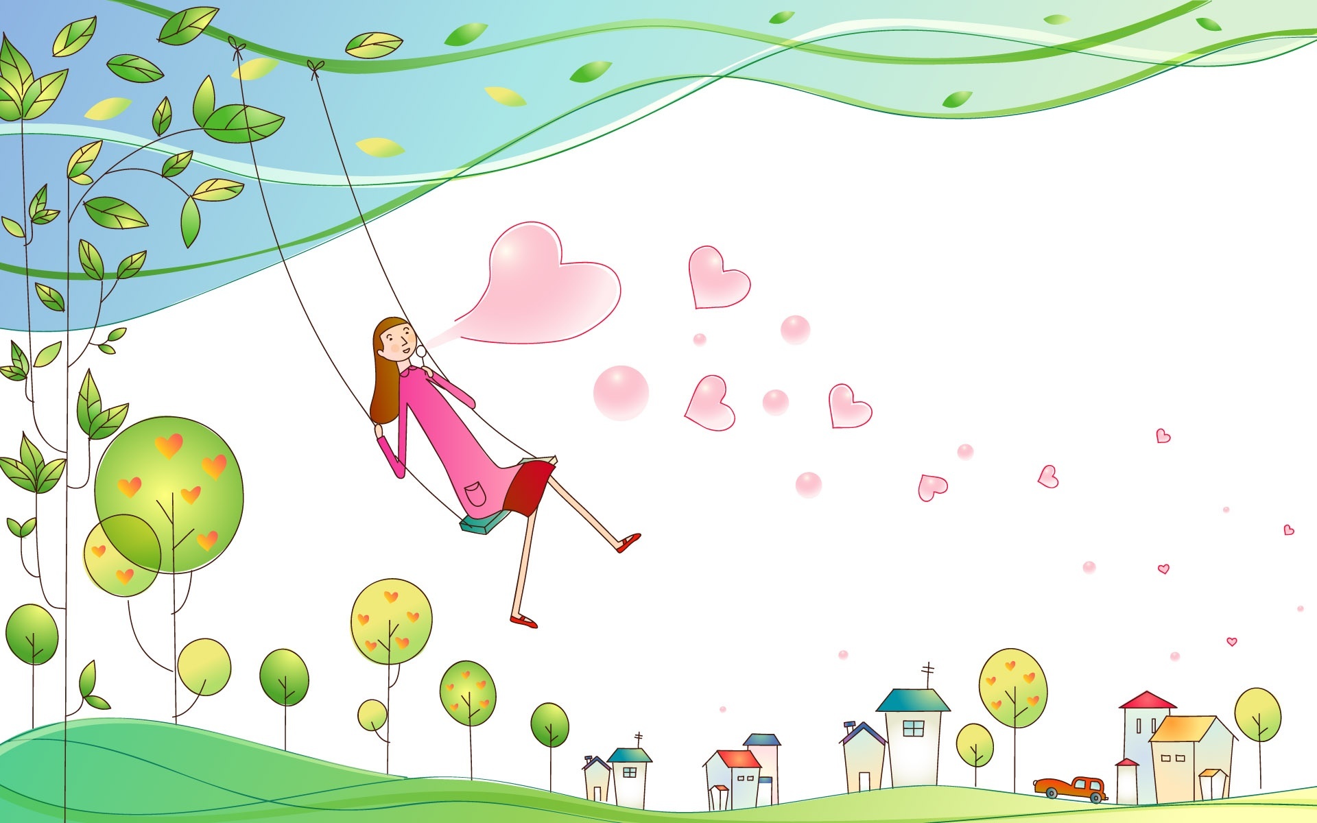 Edytor tapety: Dziewczyna, Huśtawka, Serduszka, Miłość, Rysunek
