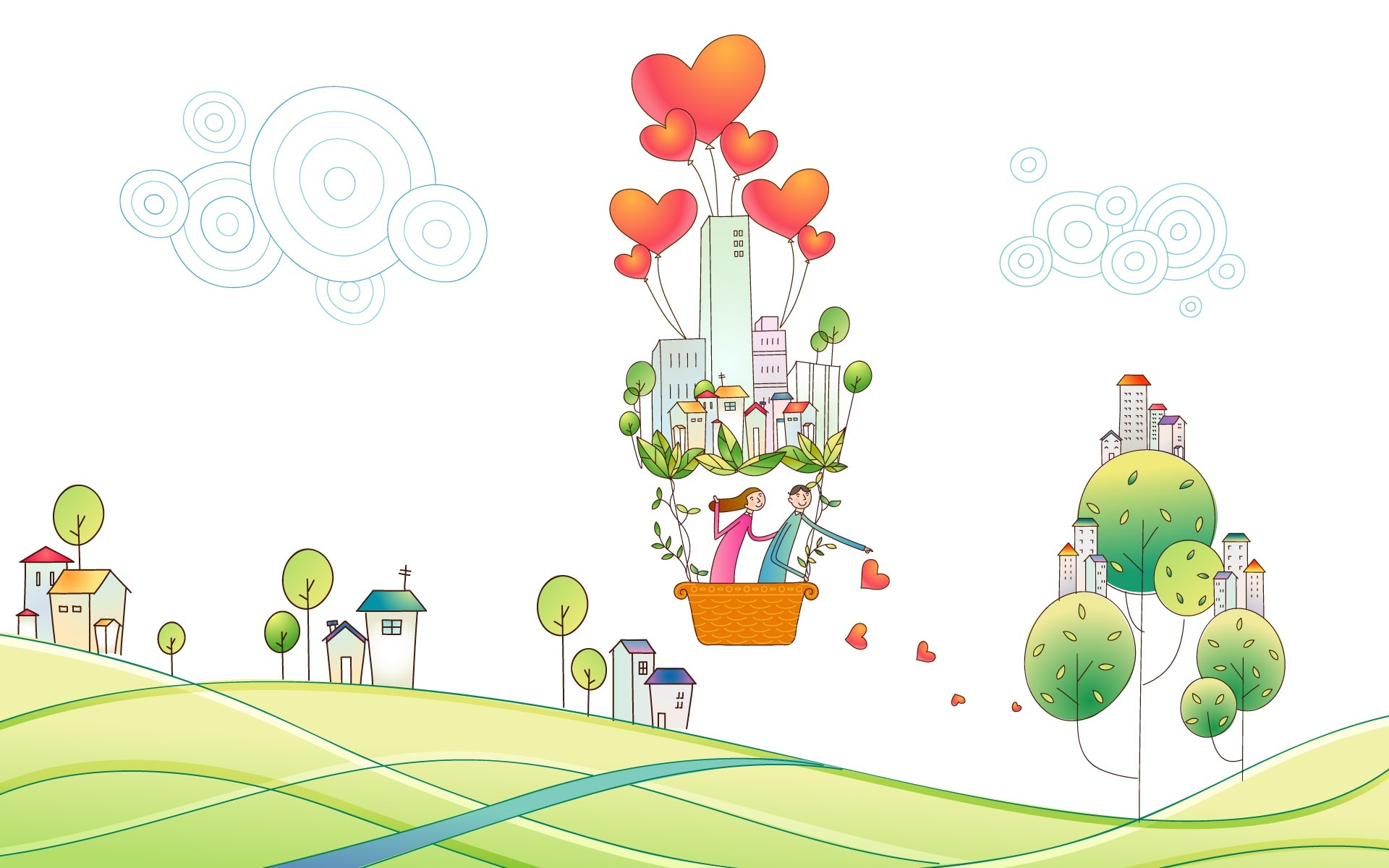 Edytor tapety: Para, Zakochanych, Balon, Serca, Rysunek