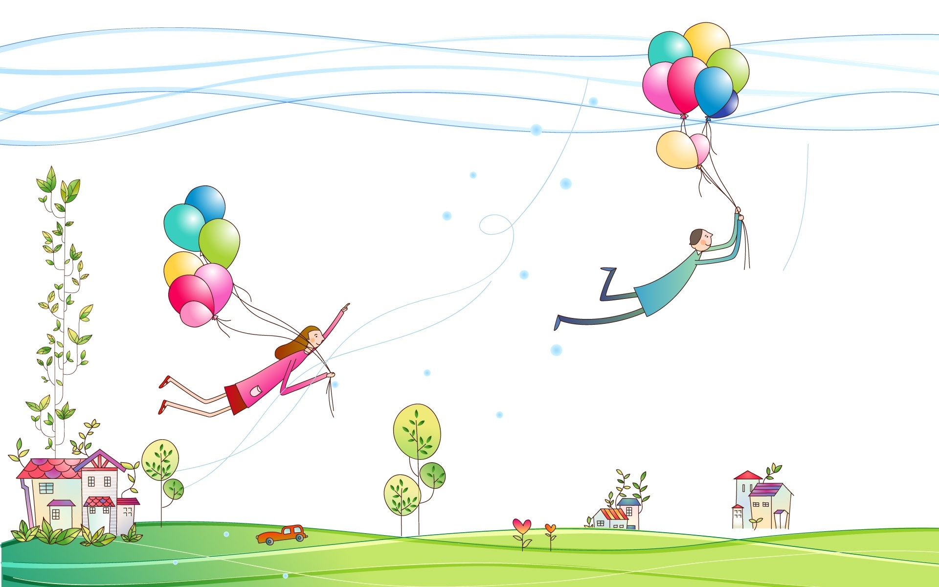 Edytor tapety: Para, Zakochanych, Balony, Lot, Rysunek