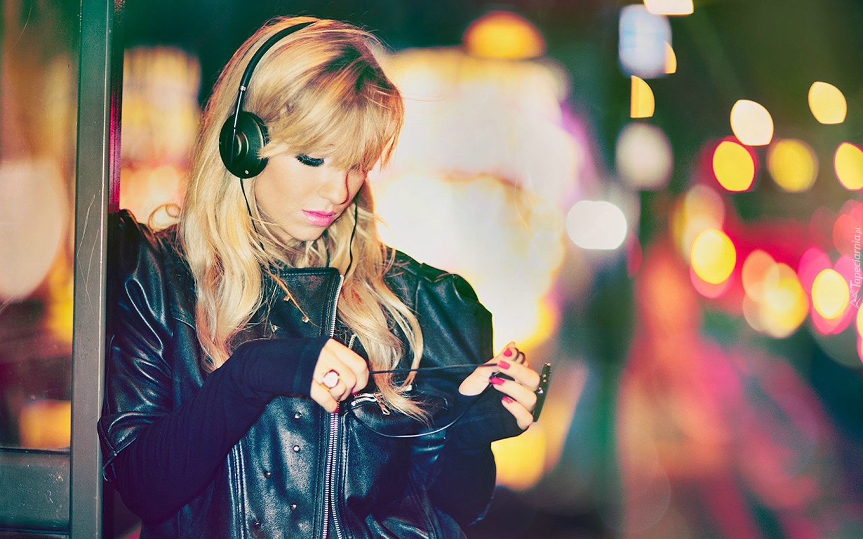 Edytor tapety: Kobieta, Blond, Włosy, Słuchawki, Muzyka