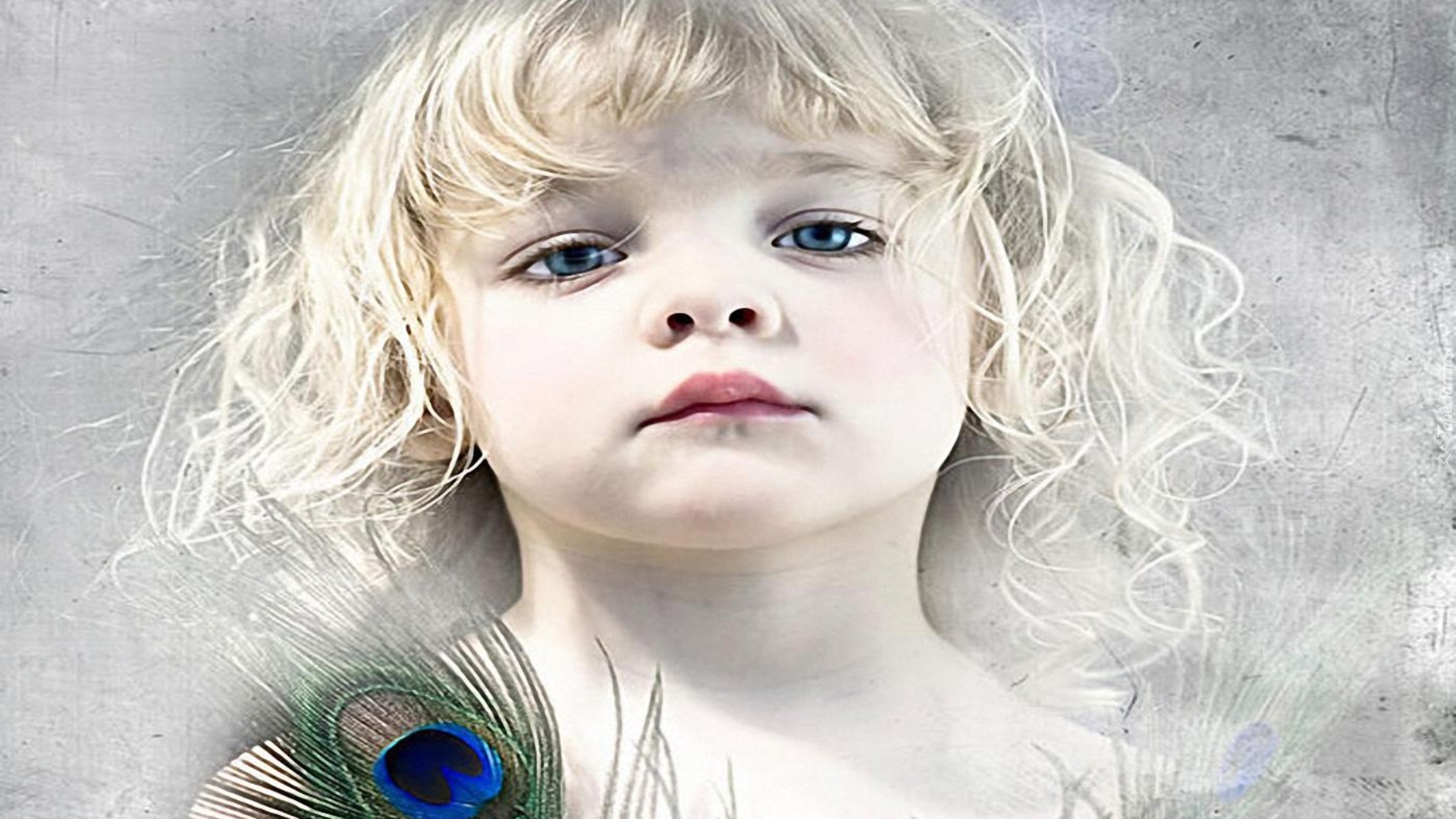 Edytor tapety: Dziecko, Niebieskie, Oczy, Pawie, Pióro