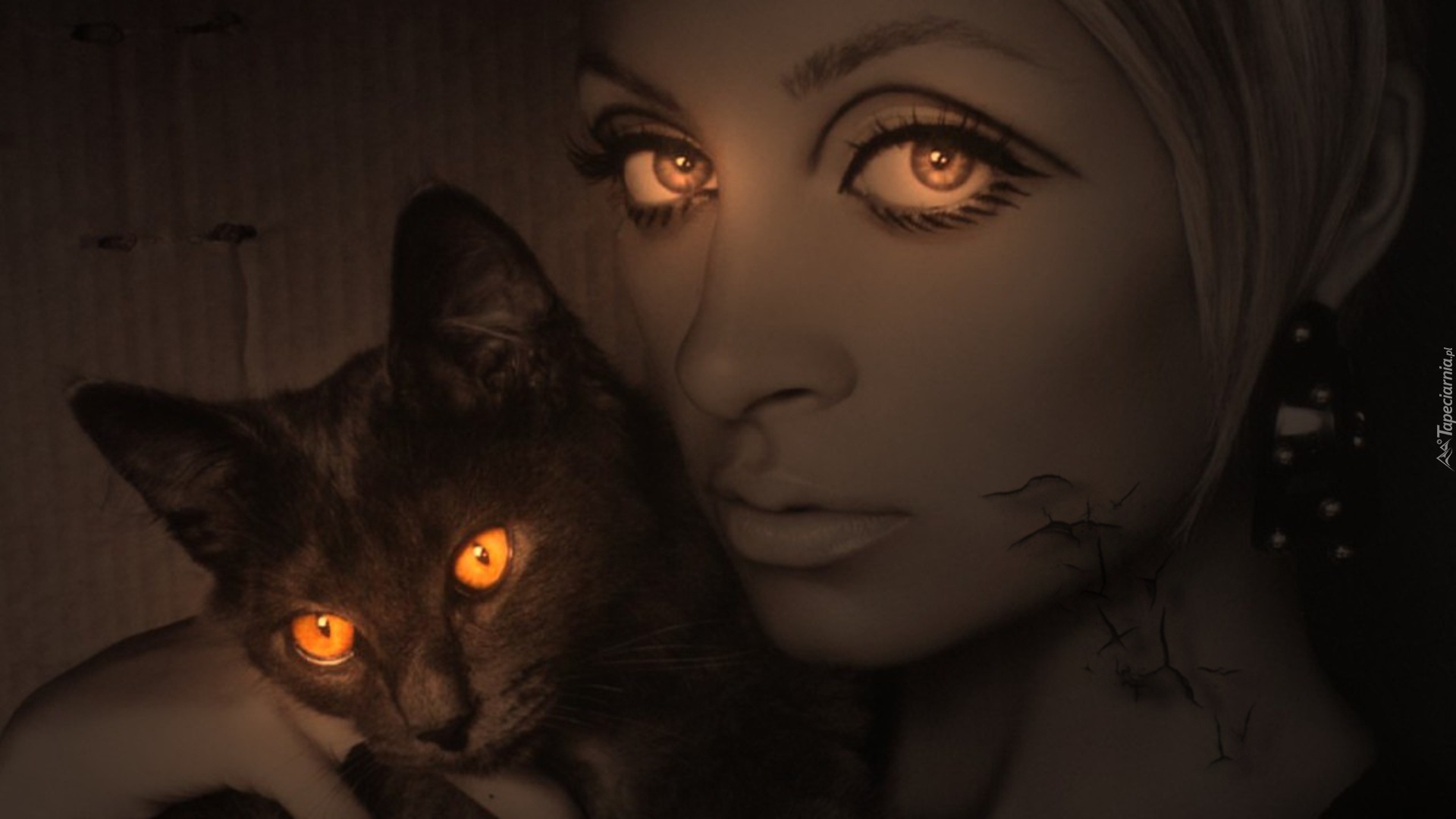 Edytor tapety: Kobieta, Kot, Podobieństwo