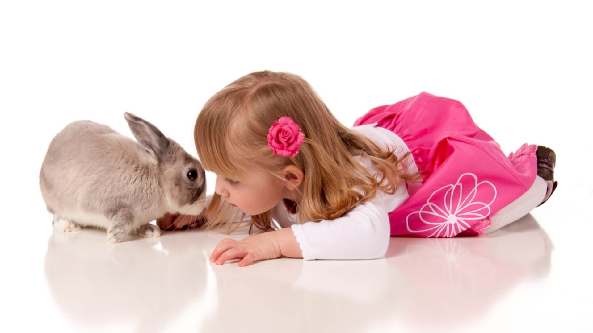 Edytor tapety: Dziewczynka, Różyczka, Królik