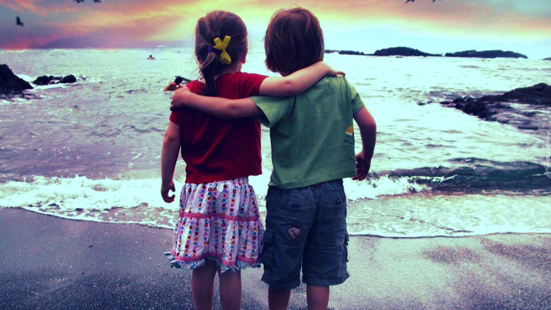 Edytor tapety: Chłopiec, Dziewczynka, Morze