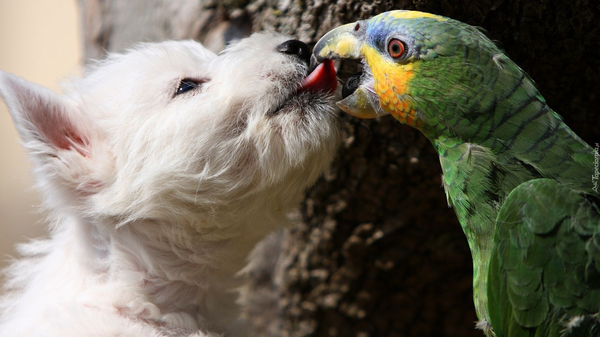 Edytor tapety: Pies, Papuga, Pocałunek