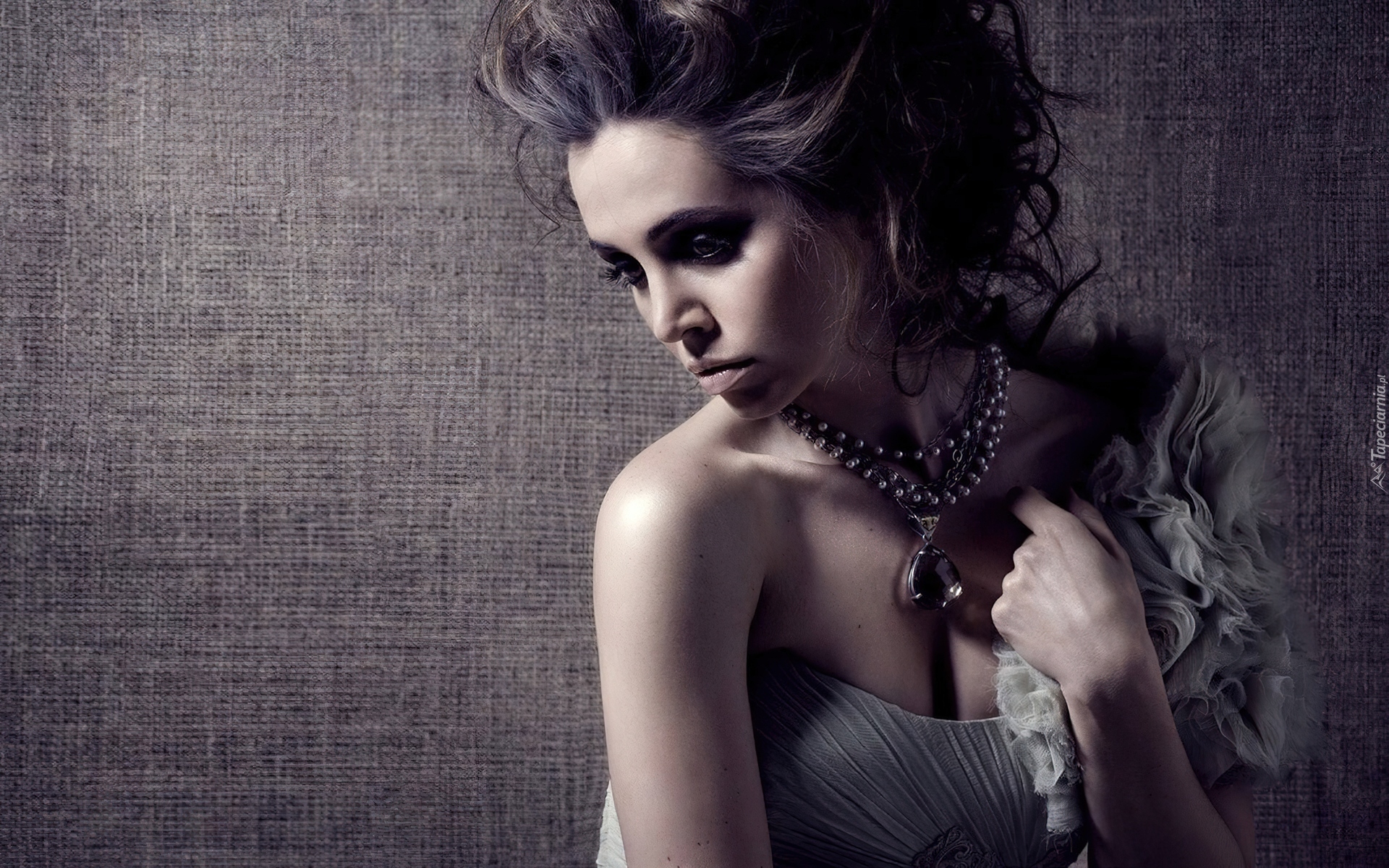 Edytor tapety: Zamyślona, Kobieta, Naszyjnik
