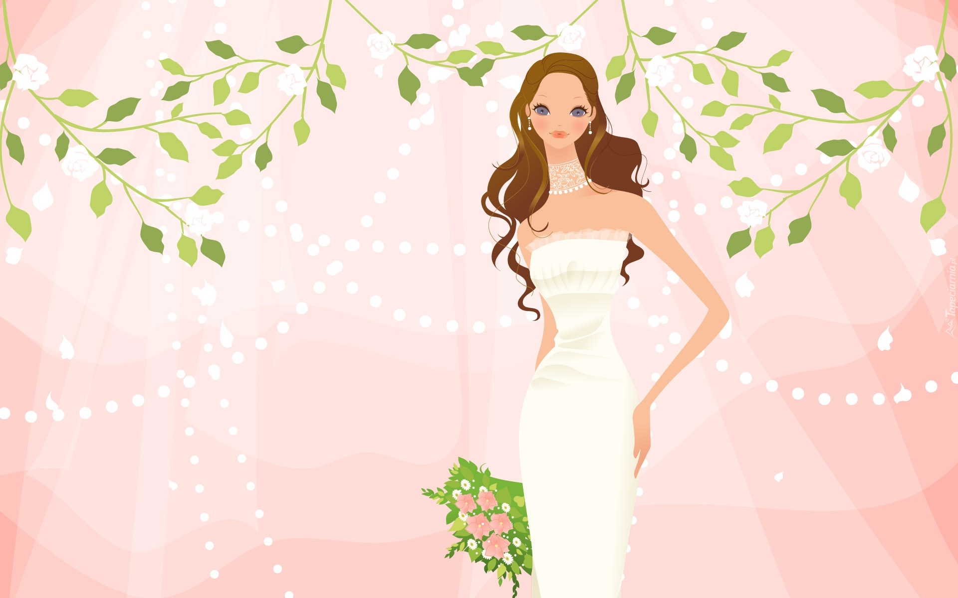 Edytor tapety: Panna, Młoda, Bukiet, Biała, Sukienka