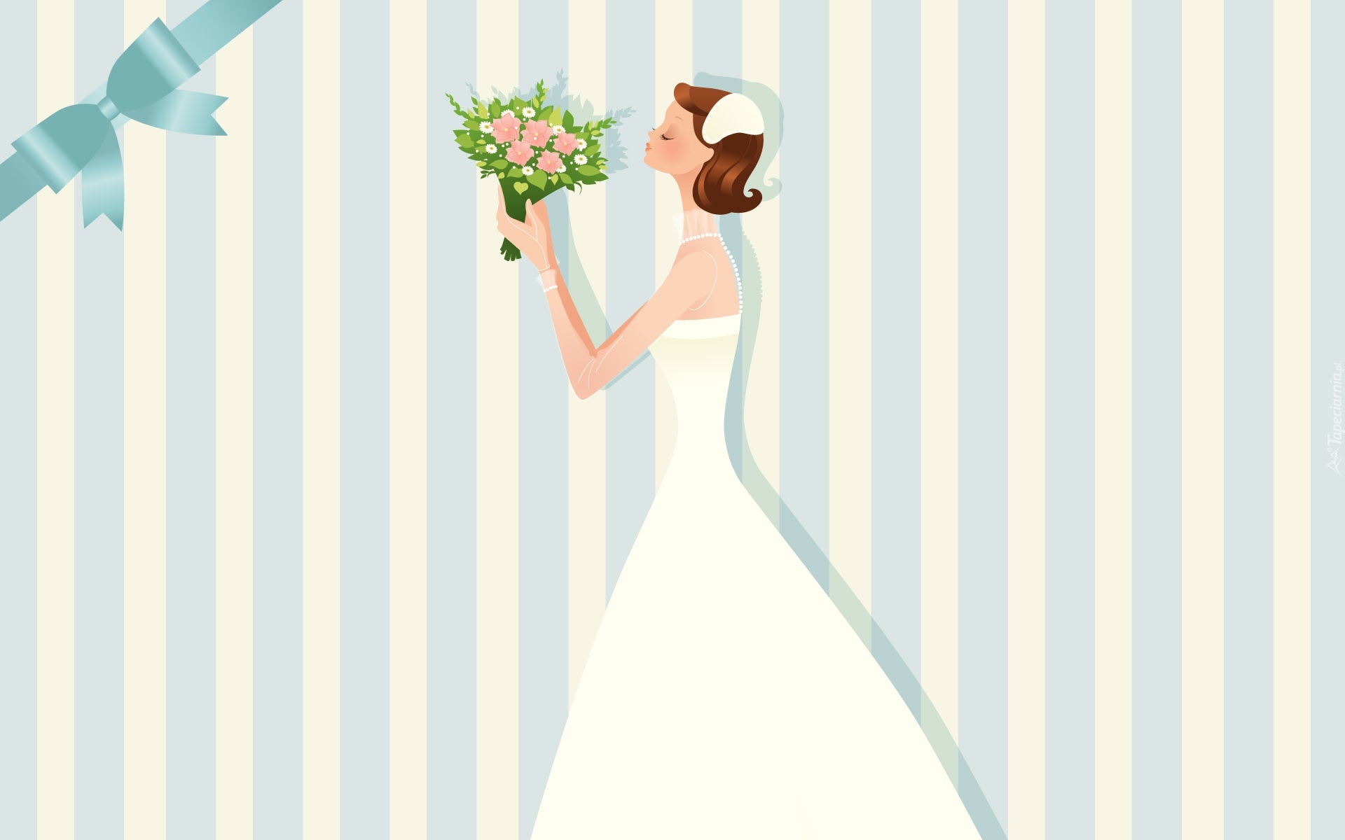 Edytor tapety: Panna, Młoda, Bukiet, Biała, Suknia
