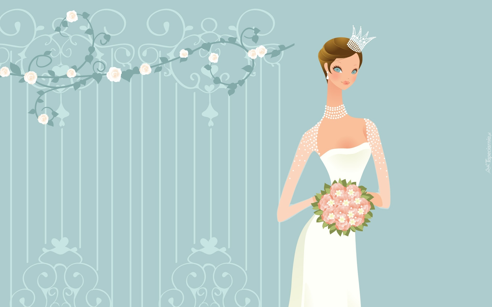 Edytor tapety: Panna, Młoda, Biała, Suknia, Bukiet