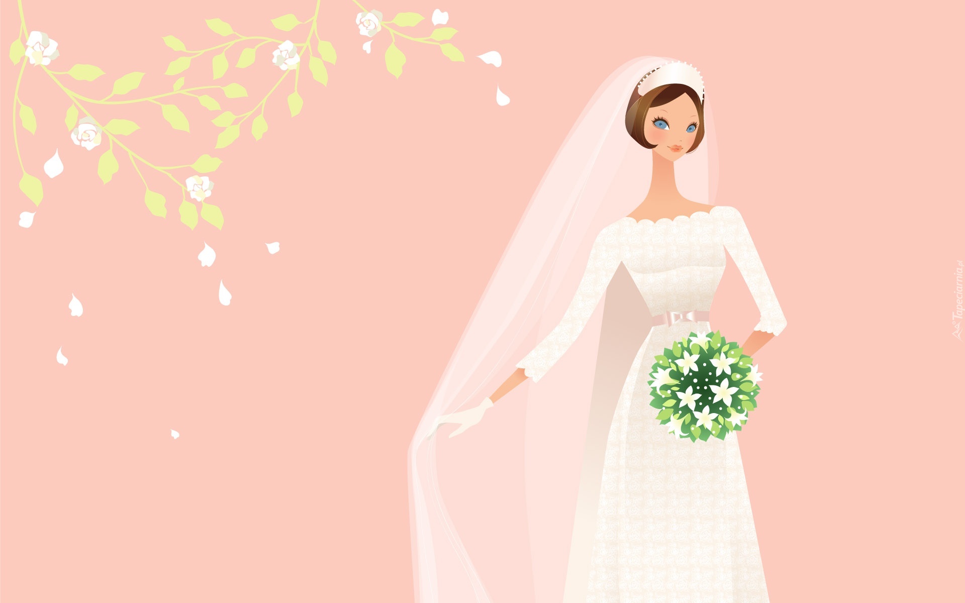 Edytor tapety: Panna, Młoda, Biała, Suknia, Bukiet, Welon