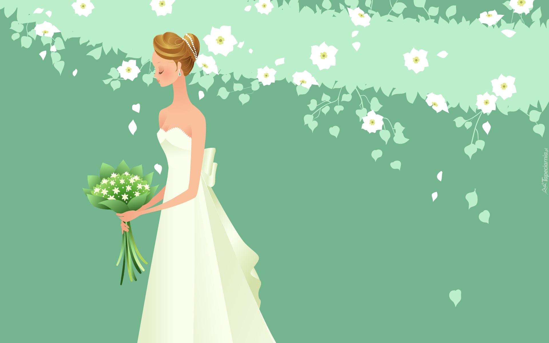Edytor tapety: Panna, Młoda, Bukiet, Kwiaty