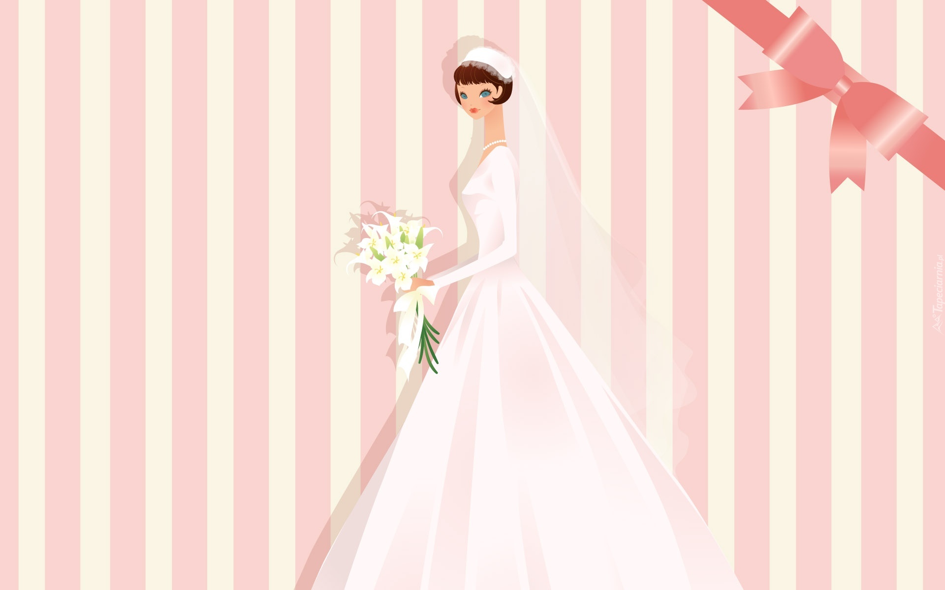 Edytor tapety: Panna, Młoda,Biała, Suknia, Bukiet