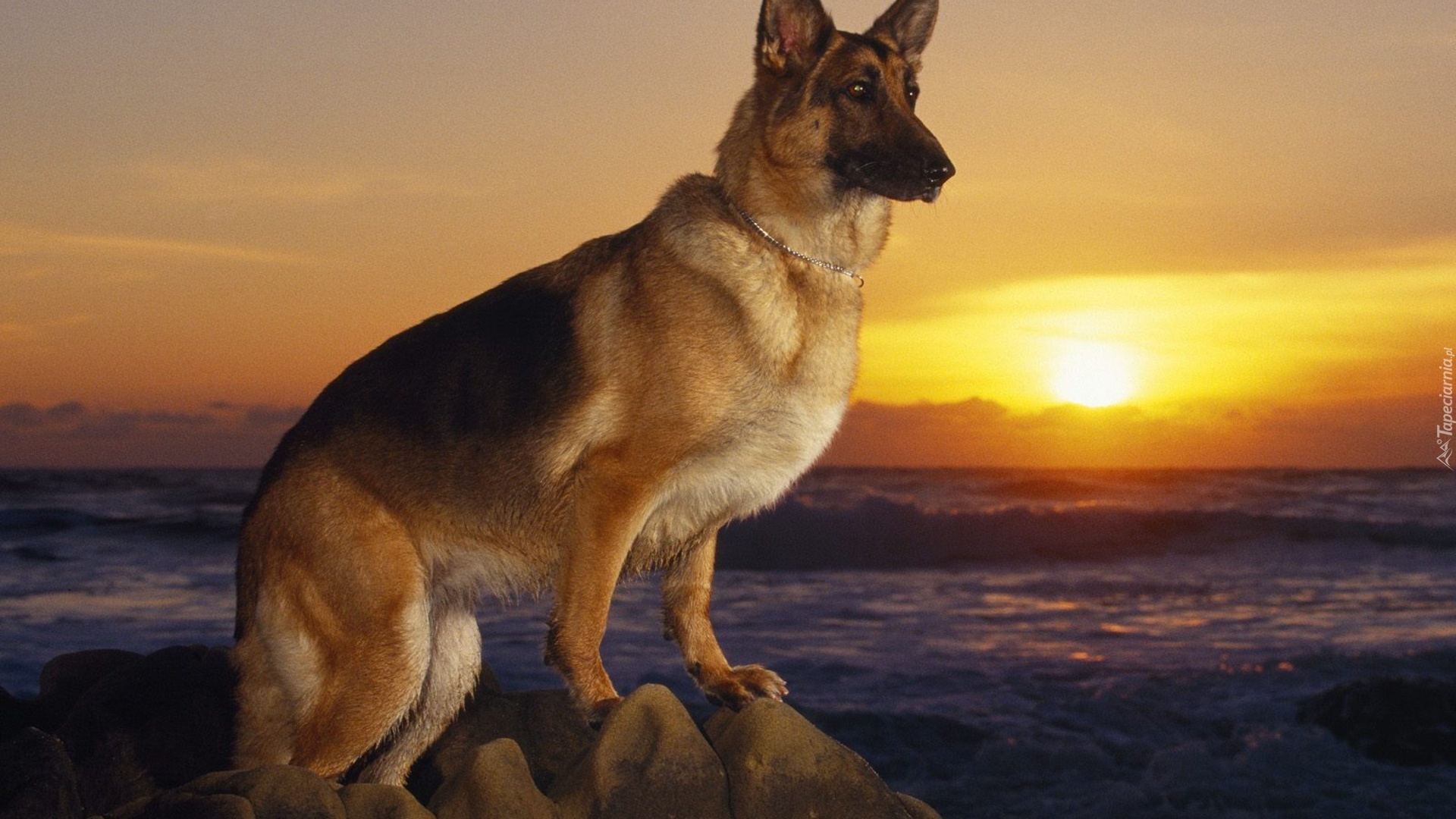 Edytor tapety: Owczarek, Niemiecki, Zachód, Słońca